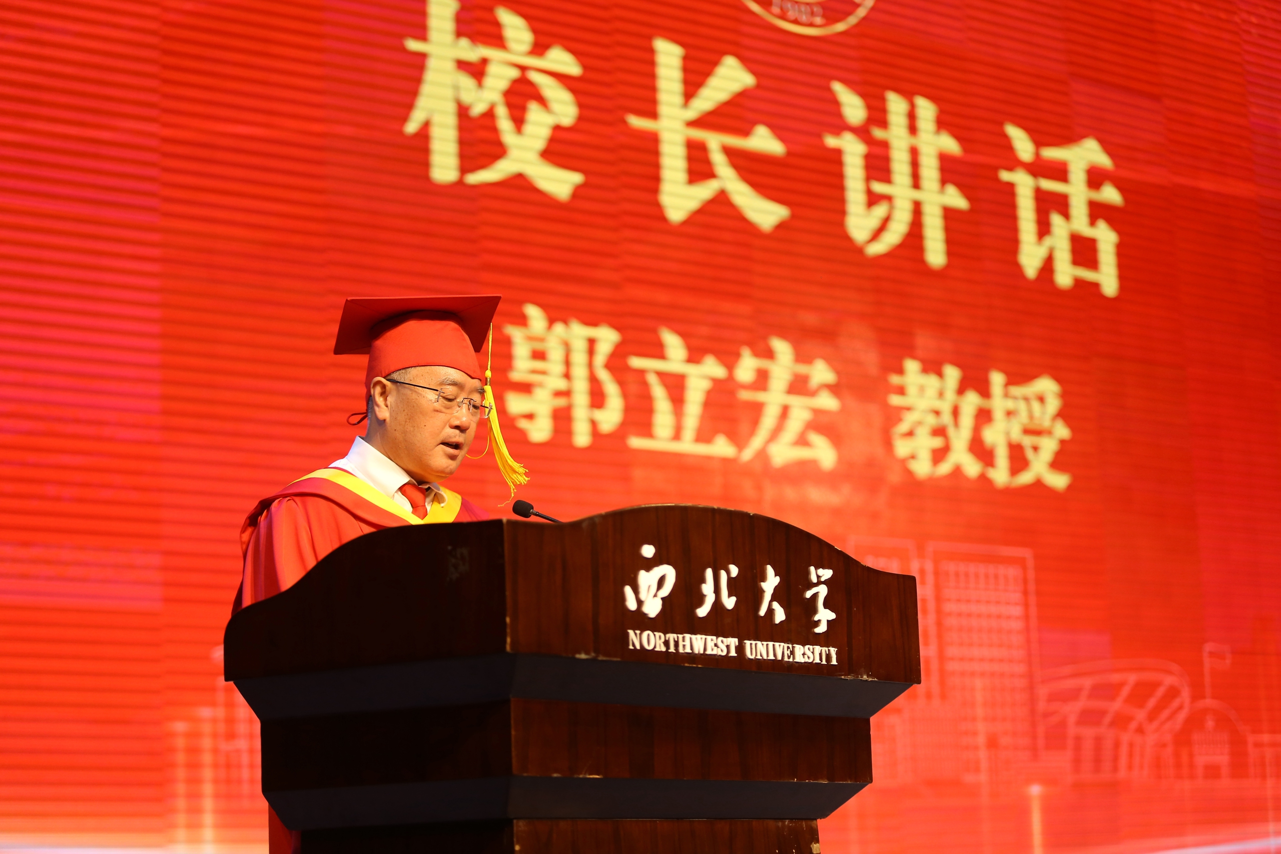 郭立宏代表学校向所有毕业生送上临别寄语。他指出,“艰苦创业,自强不息”的西大精神,才构建了西大人特有的价值取向和精神风骨。希望同学们毕业之后仍能“志存高远,心系社会;奋楫破局,开拓创新;脚踏实地,知行合一”。带着西大人的理想和信念,坚毅和果敢,勇敢地接受“时代大考、人生大考和社会大考”,谱写属于自己的人生华章。