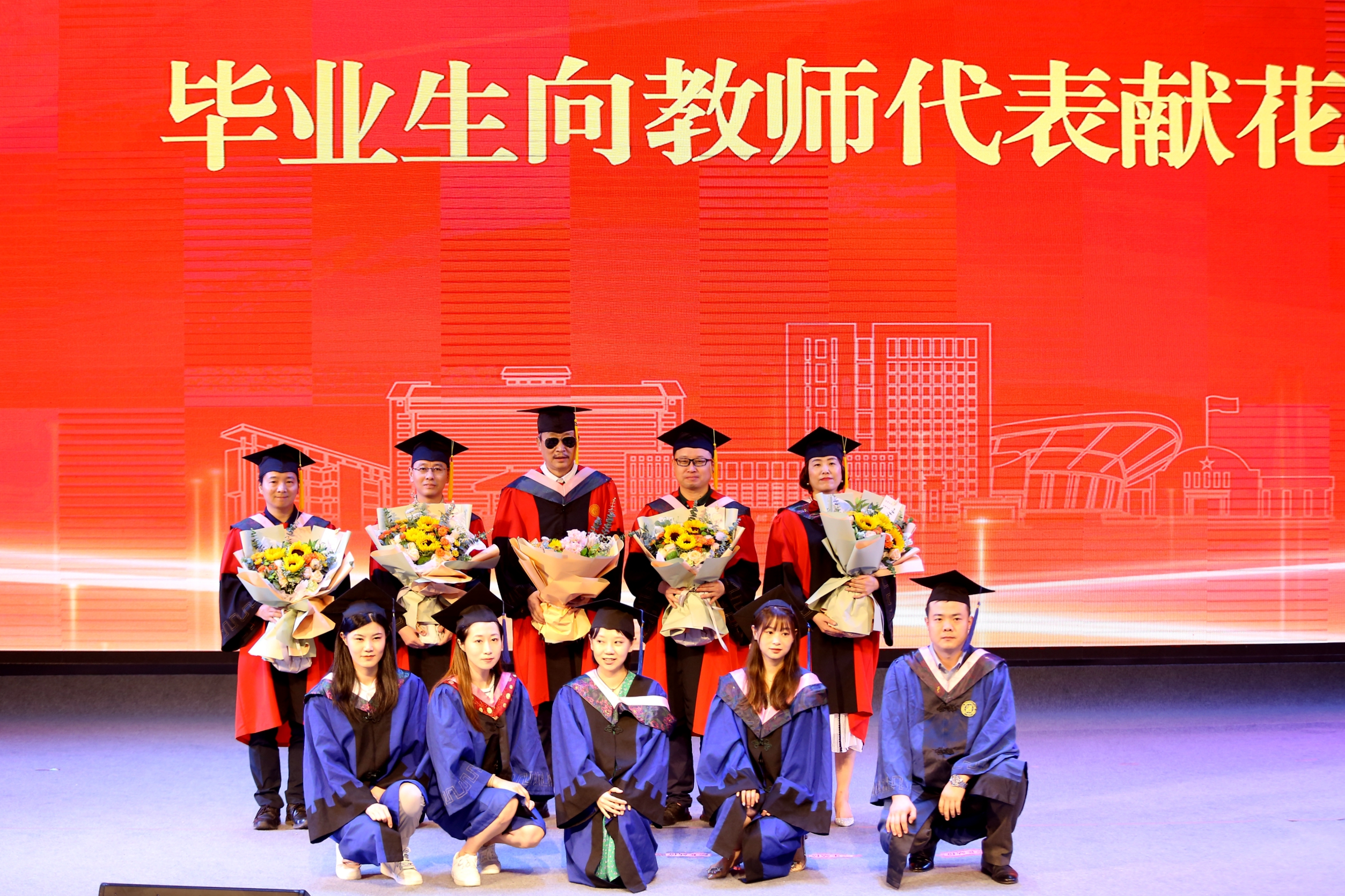 鲜花芬芳,敬谢师恩。毕业生代表向老师们献上鲜花,感谢老师们一直以来的辛勤付出和谆谆教诲。