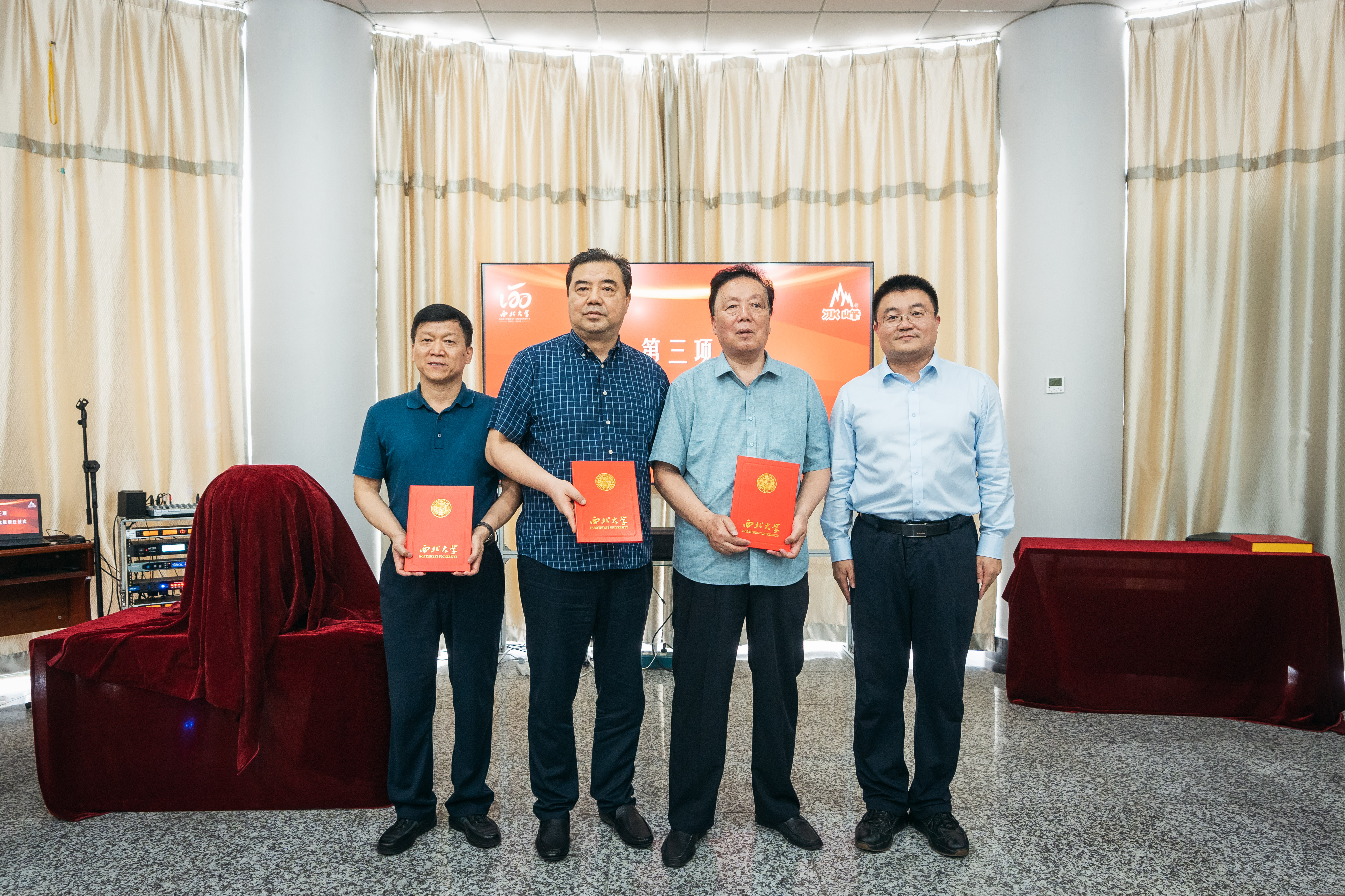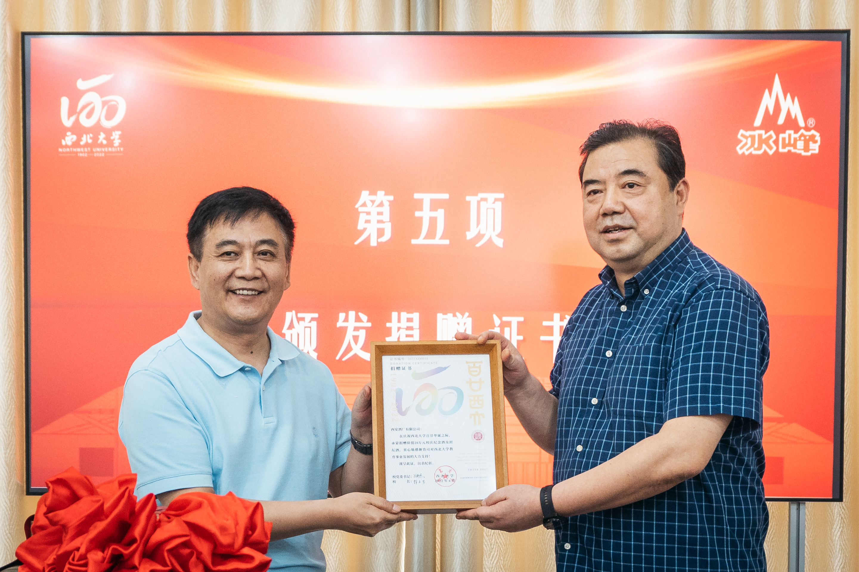 7月17日,在校庆倒计时90天之际,乐鱼网页版页面登录在太白校区举行冰峰饮品研究院揭牌聘任暨校庆捐赠仪式。西安市糖酒集团有限公司党委书记、董事长、总经理张军,中国白酒技术委员会副主任、白酒黄酒双酒种国家级评委、西安酒厂高级顾问白希智,副总经理姚军锋、王铁柱,副总经理、西安冰峰饮料股份有限公司总经理陈卫平,党委副书记袁琳,西安酒厂有限公司总经理贺军强,乐鱼网页版页面登录党委书记王亚杰,校党委副书记赵作纽,校党委常委、副校长陈富林、吴振磊出席仪式。仪式由校党委常委、副校长、校庆工作总指挥常江主持。党(校)办、科技处、规划与学科处、国内处、校庆办、食品学院、博物馆以及西安市糖酒集团有限公司相关负责人参会。