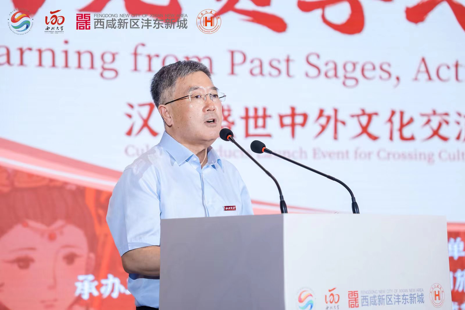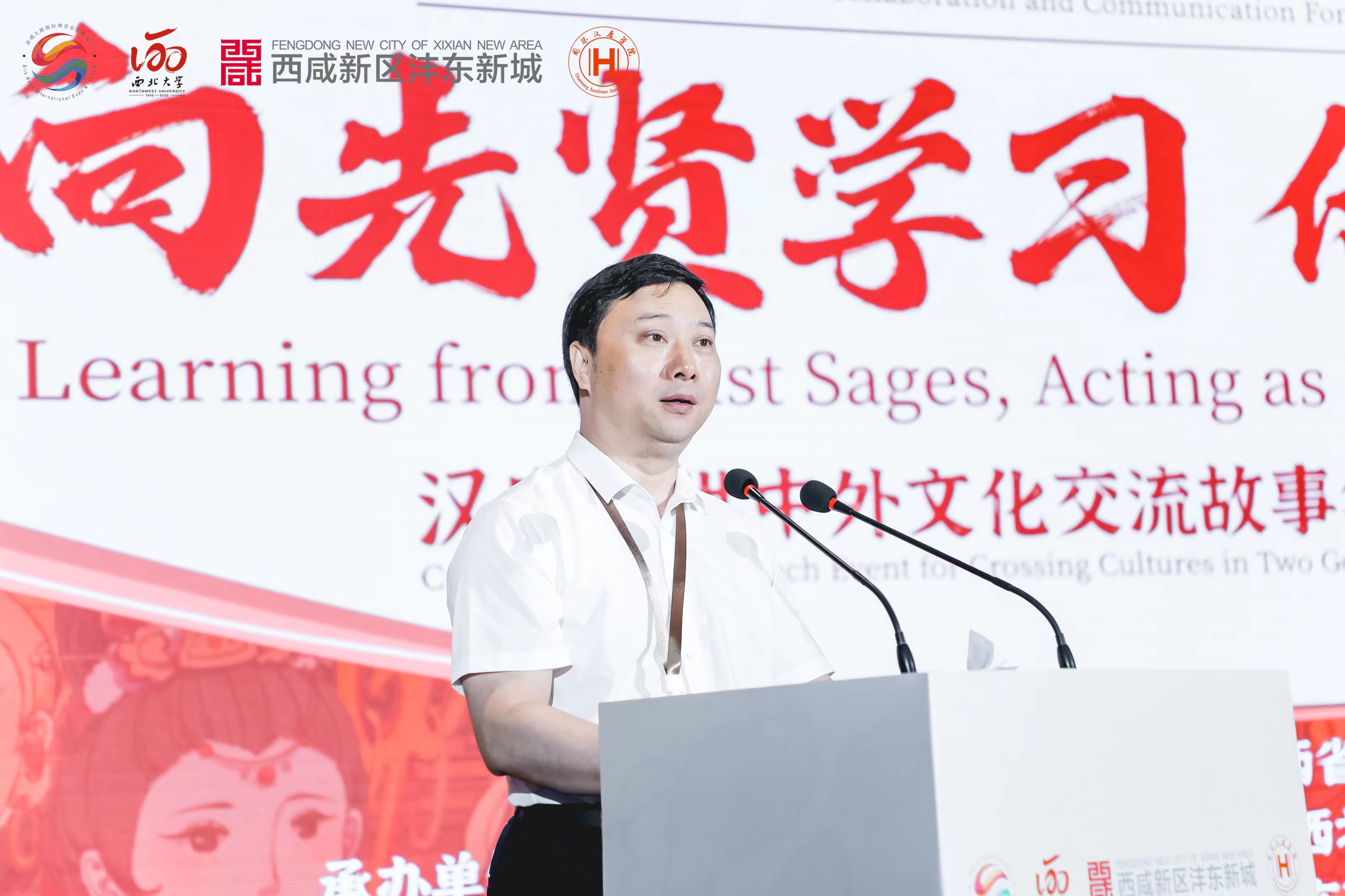 7月16日上午,由省政府主办的“向先贤学习,做交流使者”——汉唐盛世中外文化交流故事集系列文化产品发布会在西咸新区沣东新城举办,共有来自政界、学术界、艺术界的近百位中外代表出席了这次文化盛会。中国高等教育学会外国留学生教育管理分会理事长刘京辉、陕西省教育厅一级巡视员刘宝平、乐鱼网页版页面登录校长郭立宏、陕西省文化和旅游厅副厅长孟祥国、西咸新区沣东新城管理委员会副主任马建昌先后致辞,乐鱼网页版页面登录党委常委、副校长赖绍聪主持活动。