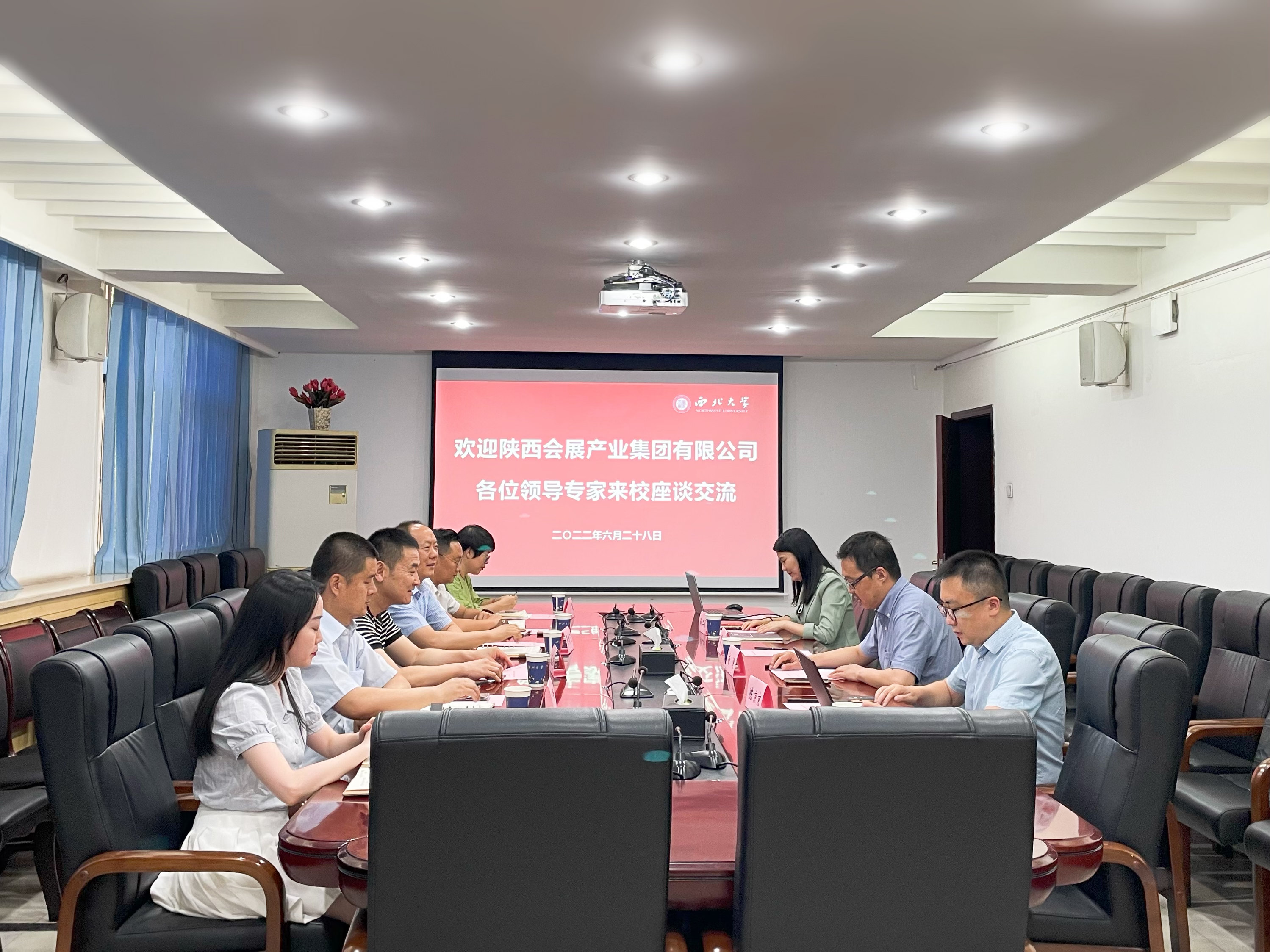 会上,碳中和学院与中华文化干部学院负责人分别介绍了学院的基本情况和建设进展,科技处负责人介绍了CCUS示范工程的有关筹备情况,陕西省会展产业集团有限公司负责人从集团简介、资源优势、战略规划及业务板块等方面介绍了陕会展集团的发展概况。双方围绕碳中和主题进行了深入细致的了解,达成了初步合作意向并就未来合作抓手进行了交流和讨论。