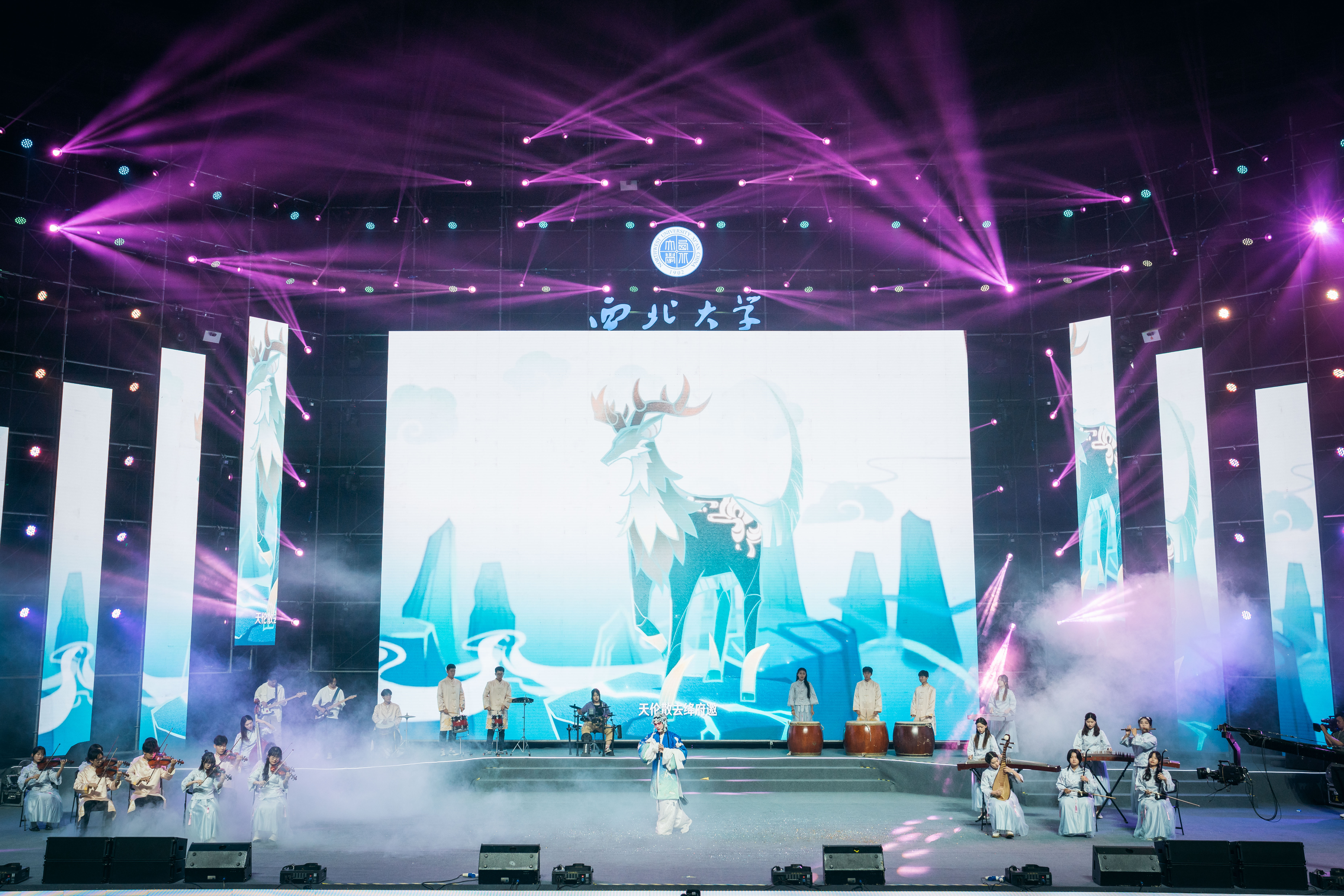 音乐会正式开始前,学生艺术团带来的《金曲青春》,耳熟能详的音乐和欢快激情的舞蹈点燃了现场观众的热情,随后的《NWU我们在一起》拉开本场音乐会的序幕,留学生代表的《Happy》鼓励毕业生永远保持热爱、保持乐观,教职工艺术团用《清晨,我们踏上小道》《雕花的马鞍》《往日时光》《沉思》等节目祝福毕业学子前程似锦、未来可期,阿卡贝拉《贝加尔湖畔》《凤凰花开的路口》诉说了毕业生们对母校、同学、老师们的眷恋之情,《再次重逢的世界》《街舞串烧》《洛水佼人》《飞彩携流年》等节目,通过街舞、京剧表演、中国民乐演奏等方式展示了西大青年学子多才多艺的风采,彰显了丰富多彩、开放包容的校园文化氛围,朗诵《光的岁月》和男声小合唱《不说再见》,带领现场观众回顾重温校园里的美好时光,为毕业的西大学子送上诚挚的祝福。