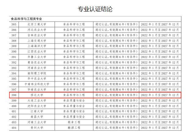 近日,中国工程教育专业认证协会公布了2021年通过工程教育认证的专业名单,乐鱼网页版页面登录食品科学与工程专业通过认证。目前,乐鱼网页版页面登录共有5个工科专业通过工程教育认证。