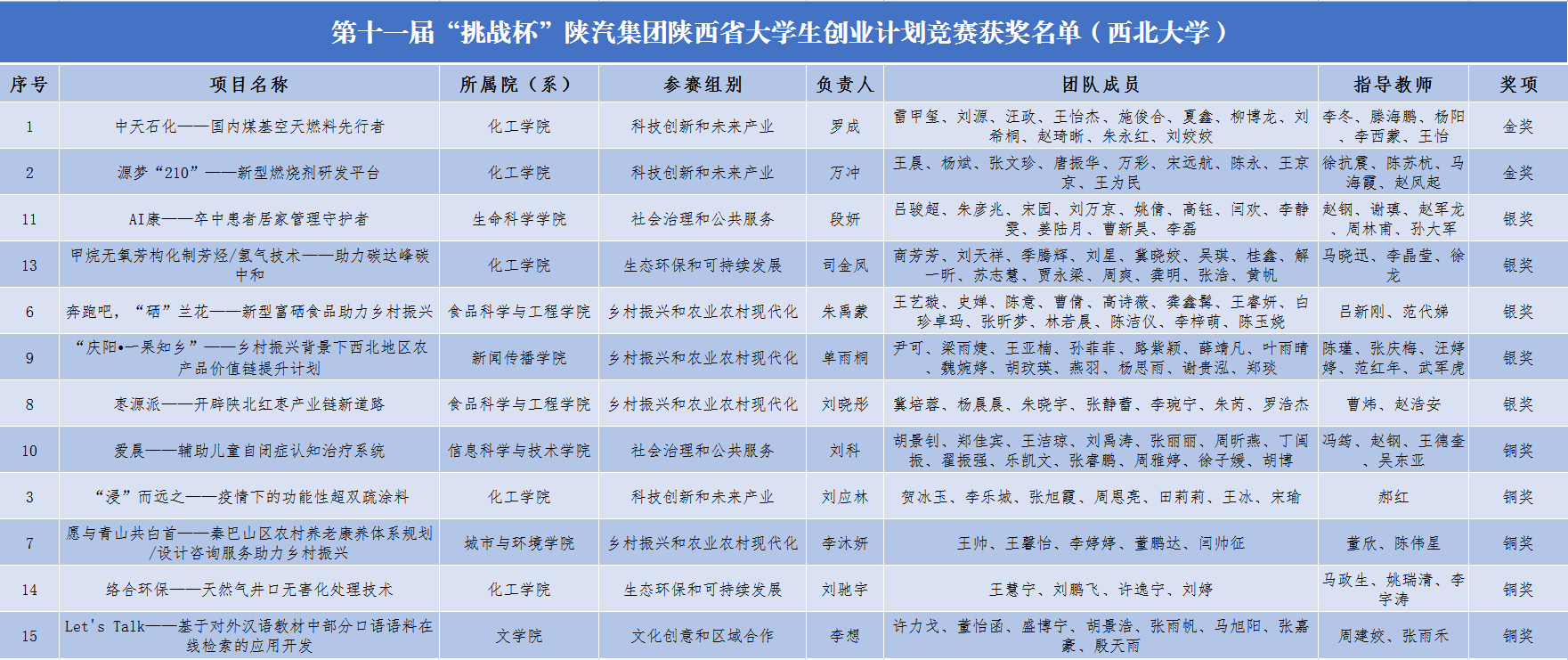 6月25日下午,由团省委、省委教育工委、省科技厅、省人社厅、省科协、省社科院、省学联、西咸新区管委会共同主办,西安理工大学、秦创原创新促进中心承办的第十一届“挑战杯”陕汽集团陕西省大学生创业计划竞赛圆满落幕。