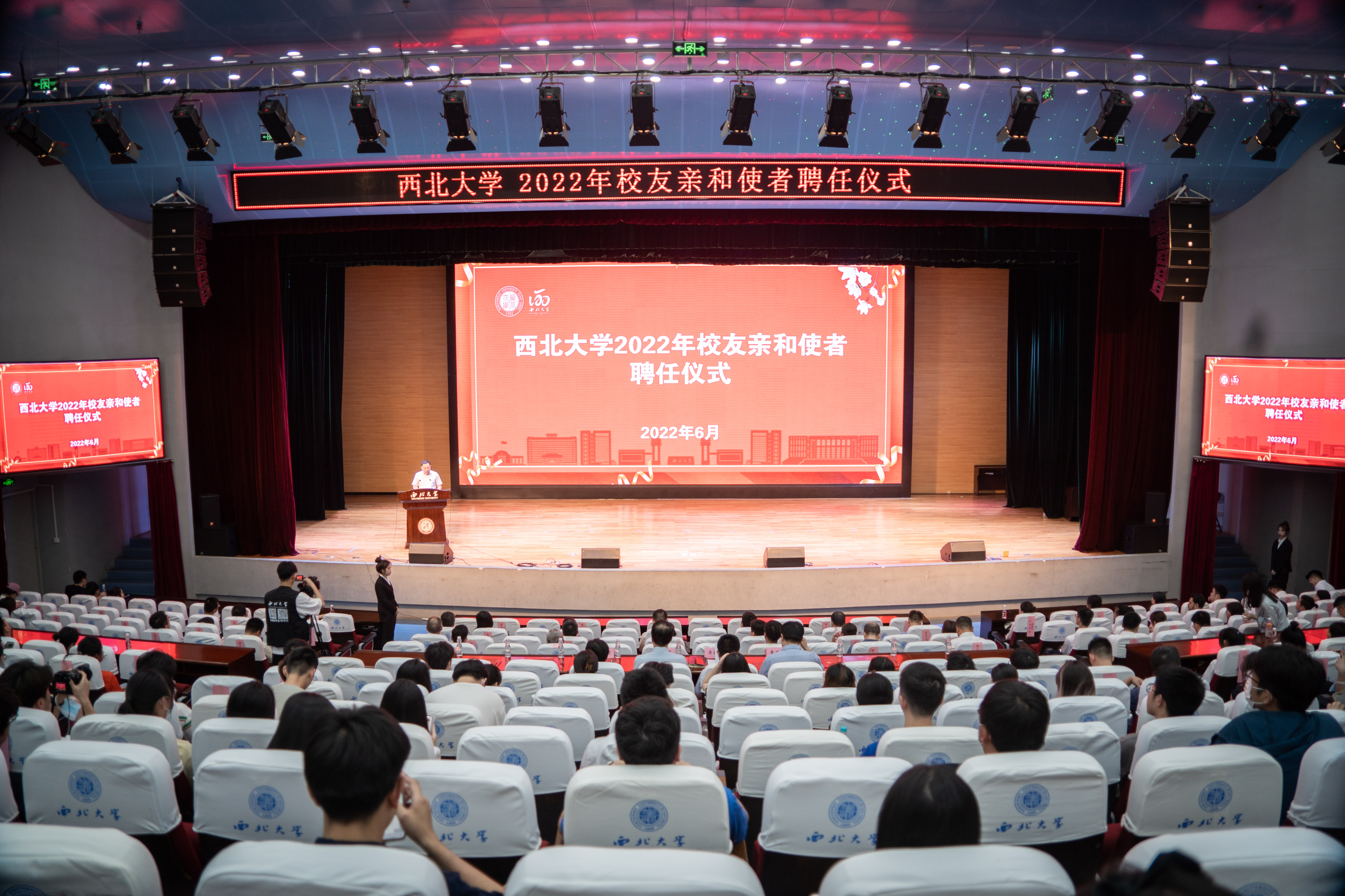 6月16日,乐鱼网页版页面登录2022年校友亲和使者聘任仪式在长安校区举行。校党委常委、副校长吴振磊,学生工作部、研究生工作部、国内合作与校友工作处负责人,各院(系)校友工作负责人、联络员和241名校友亲和使者参加了聘任仪式。
