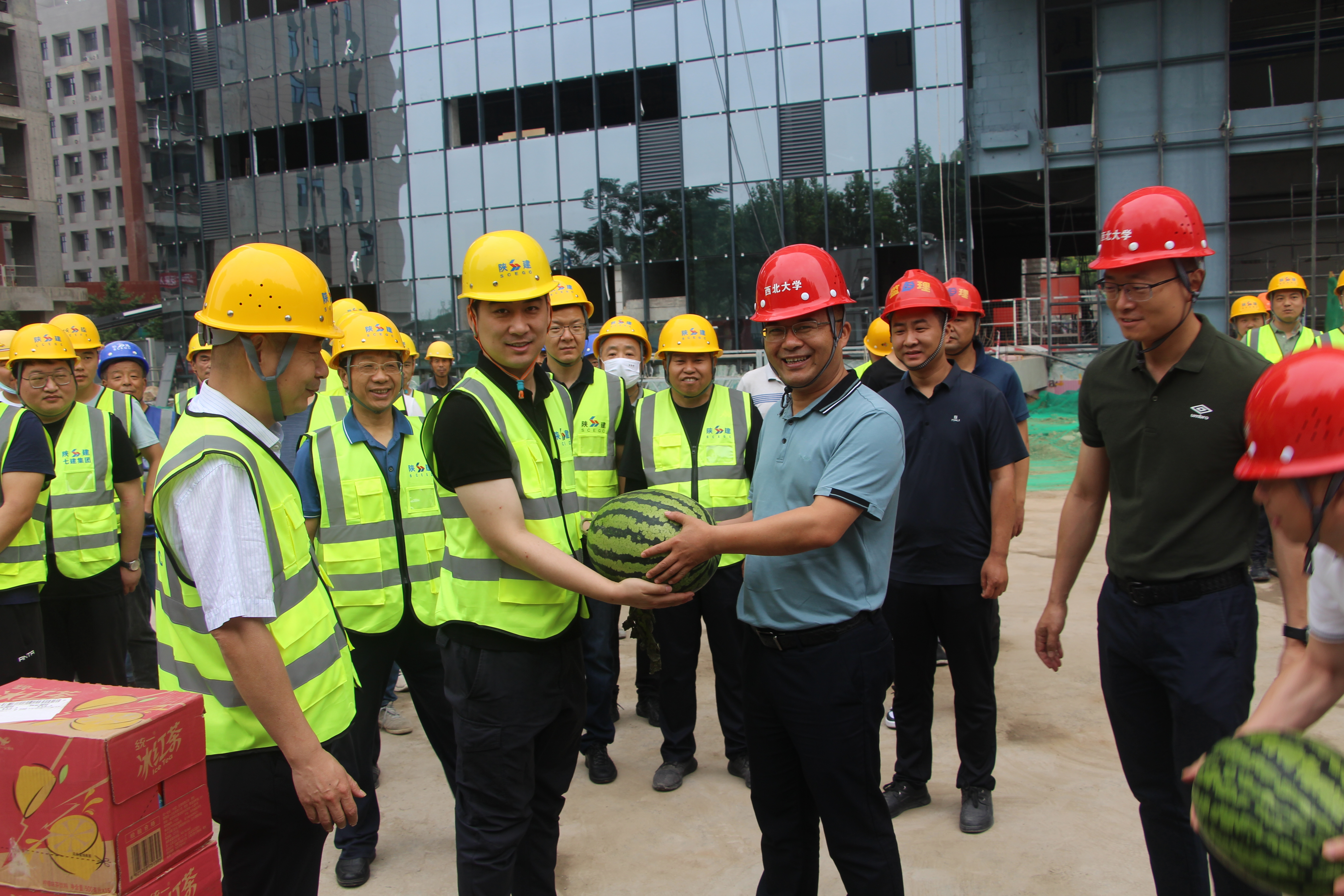 “夏送清凉进工地”慰问活动是学校一贯重视并坚持落实的人文关怀活动。高温下的关怀,让坚守一线的施工人员切实感受到学校大家庭的温暖。施工单位现场负责人代表一线工人对学校的关怀表示衷心的感谢,表示会在确保施工人员身体健康的前提下,继续发扬不怕吃苦、不怕累的协作奋战精神,以更饱满的热情投入到工程建设中,确保安全和质量,加快施工进度,努力铸造精品工程。