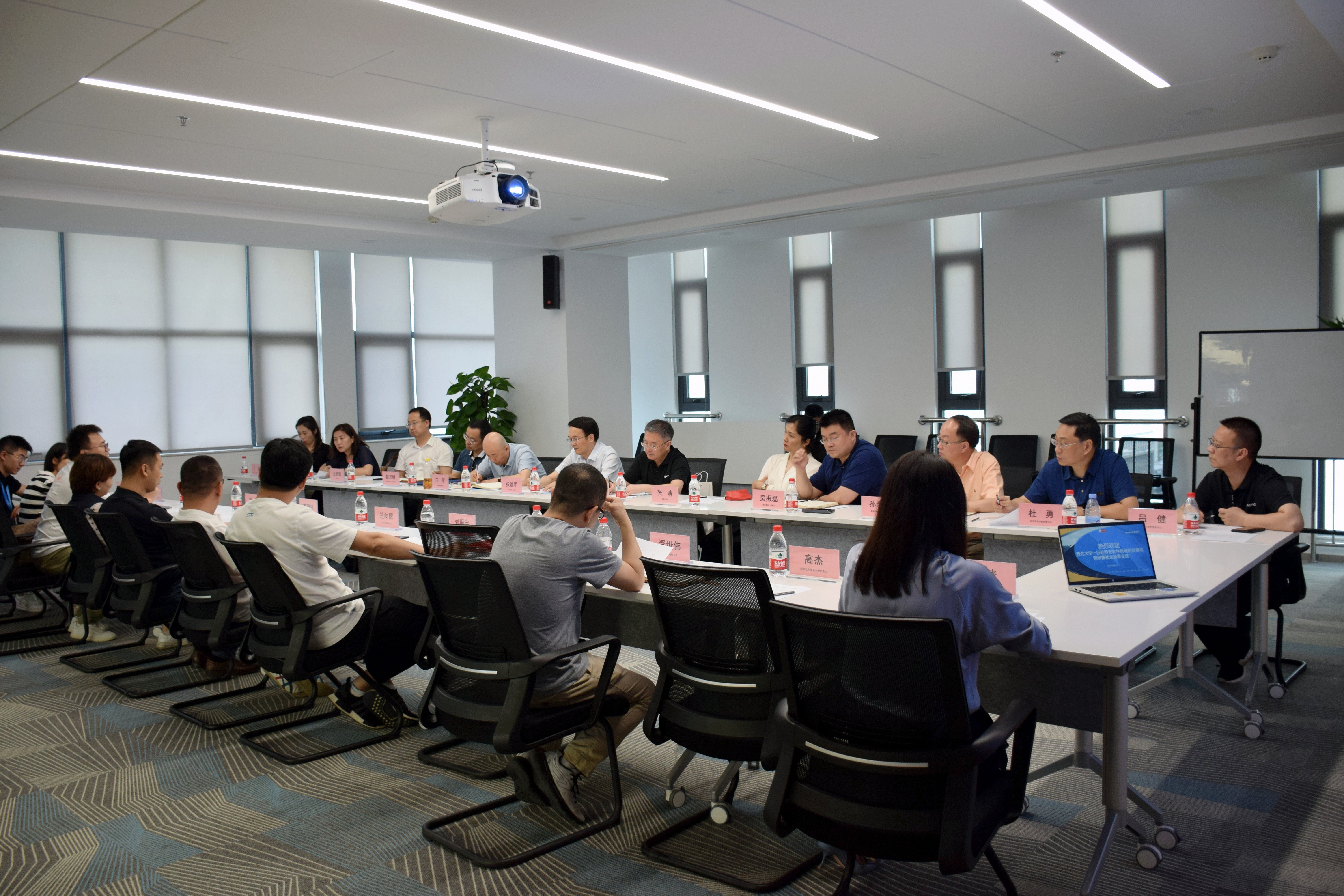 为进一步贯彻落实教育部“访企拓岗促就业”专项行动精神,加强校企沟通合作,推动毕业生高质量就业,6月7日下午,校长郭立宏带队,校党委副书记张清,校党委常委、副校长张远军、吴振磊,文学院、经济管理学院、外国语学院、法学院、新闻传播学院、艺术学院、信息科学与技术学院负责人和就创中心工作人员一行14人赴西安软件新城研发基地交流座谈。易点天下联合创始人兰向辉、纽扣软件CEO葛贤钰、维纳数字科技董事长王顺冉、绝峰网络副总经理刘振宇等企业负责人参加座谈。