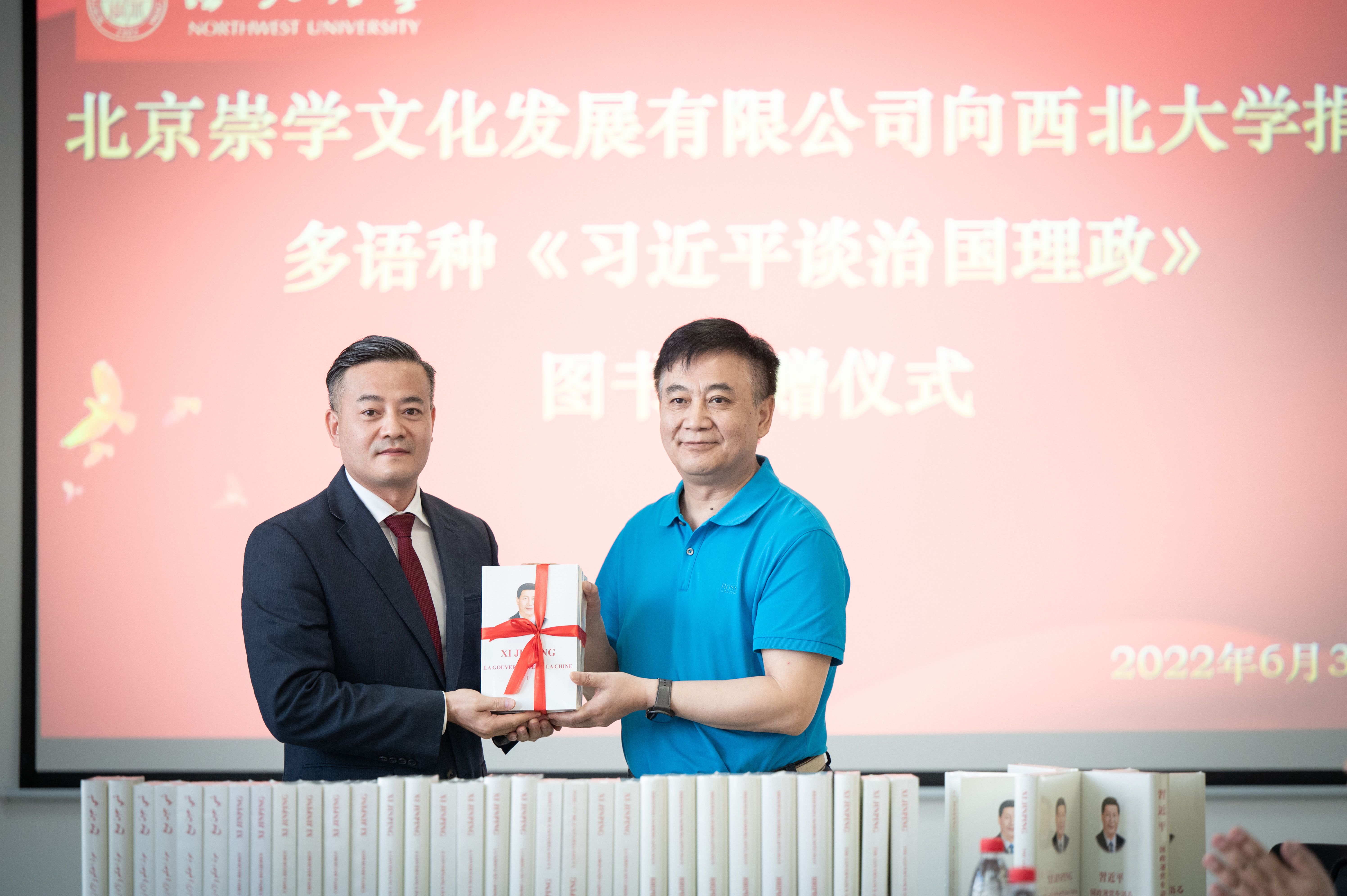 6月3日,学校在长安校区举行多语种《习近平谈治国理政》系列图书捐赠仪式。北京崇学文化发展有限公司负责人余富文向乐鱼网页版页面登录捐赠了多语种《习近平谈治国理政》系列图书480册,涵盖英、法、俄、阿、西、葡、德、日等多语种版本。乐鱼网页版页面登录党委书记王亚杰代表学校接受捐赠,并向余富文颁发收藏证书。仪式由校党委常委、副校长常江主持。