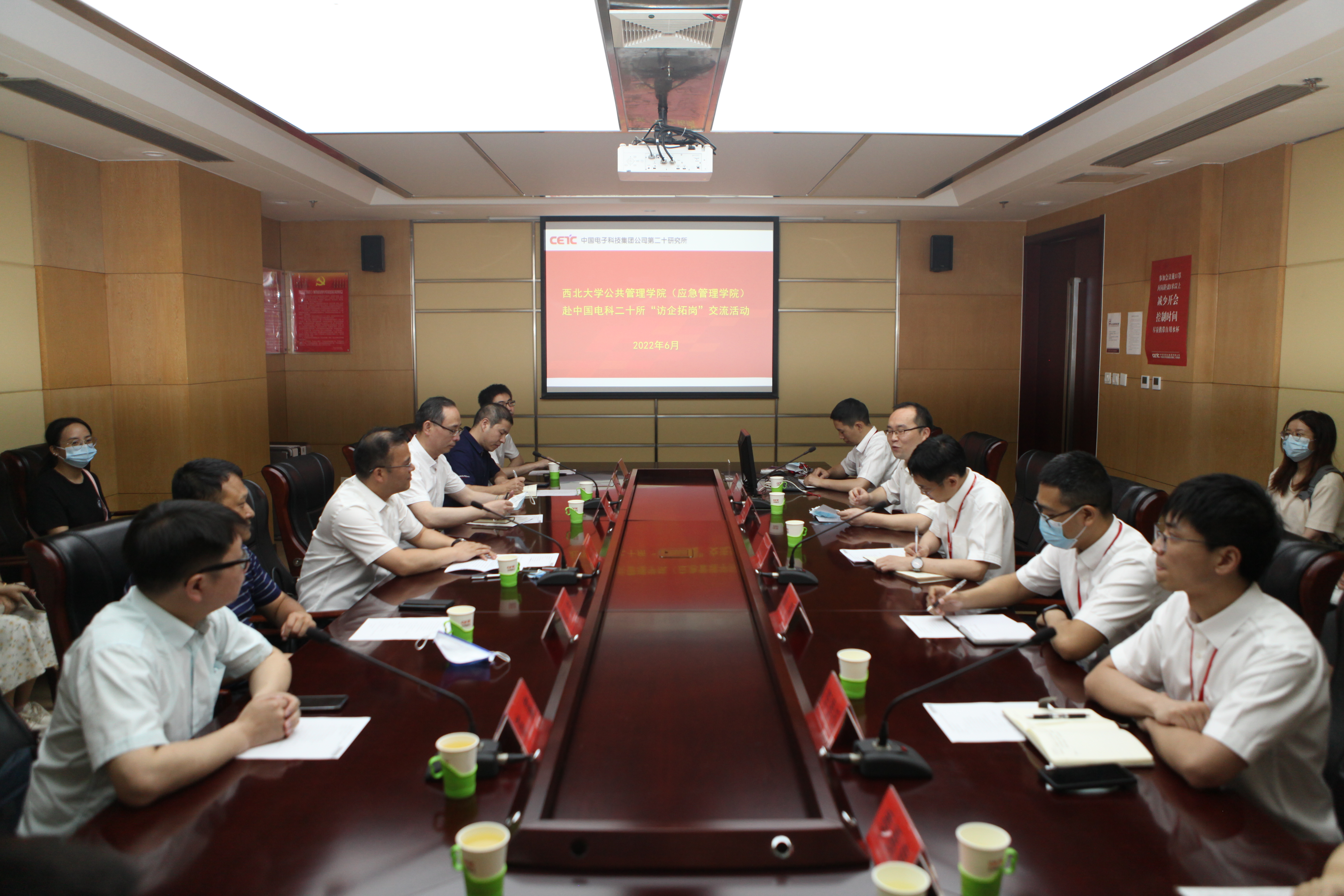为进一步贯彻落实教育部和陕西省教育厅访企拓岗促就业专项行动,加强校企沟通合作,6月1日上午,校党委常委、副校长奚家米,公共管理学院(应急管理学院)党委负责人、辅导员、部分硕士研究生一行赴中国电子科技集团公司第二十研究所走访交流,洽谈学生就业等合作事宜。二十所党委委员、纪委书记侯惠民,党群机关党总支书记、人力资源部副主任符浩,科技部李德权、人力资源部周孝琪、信息保障中心周焘和综合管理部季禹良参加座谈。
