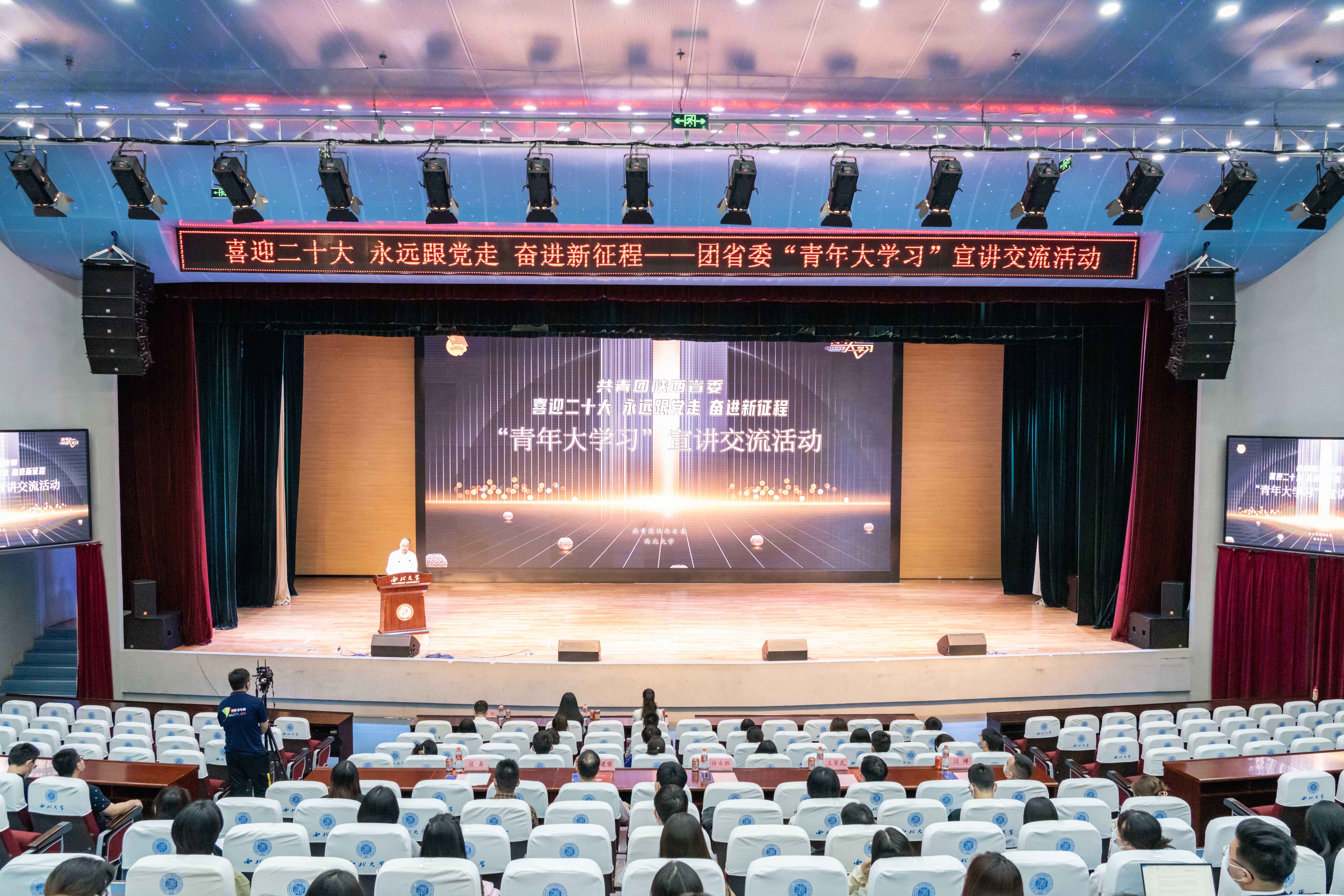 为深入学习宣传贯彻习近平总书记在庆祝中国共产主义青年团成立100 周年大会上的重要讲话精神,5月31日下午,“喜迎二十大 永远跟党走 奋进新征程”——团省委“青年大学习”首场示范宣讲交流活动在乐鱼网页版页面登录长安校区举办,团省委书记、省青联主席徐永胜、团省委二级巡视员王军民,校党委副书记吕建荣出席了活动,校院两级青马工程、习近平新时代中国特色社会主义思想青年研习社团学青年代表现场听取了宣讲,来自全省2万余人次通过陕西共青团各新媒体平台同步在线学习。活动由乐鱼网页版页面登录团委负责人主持。