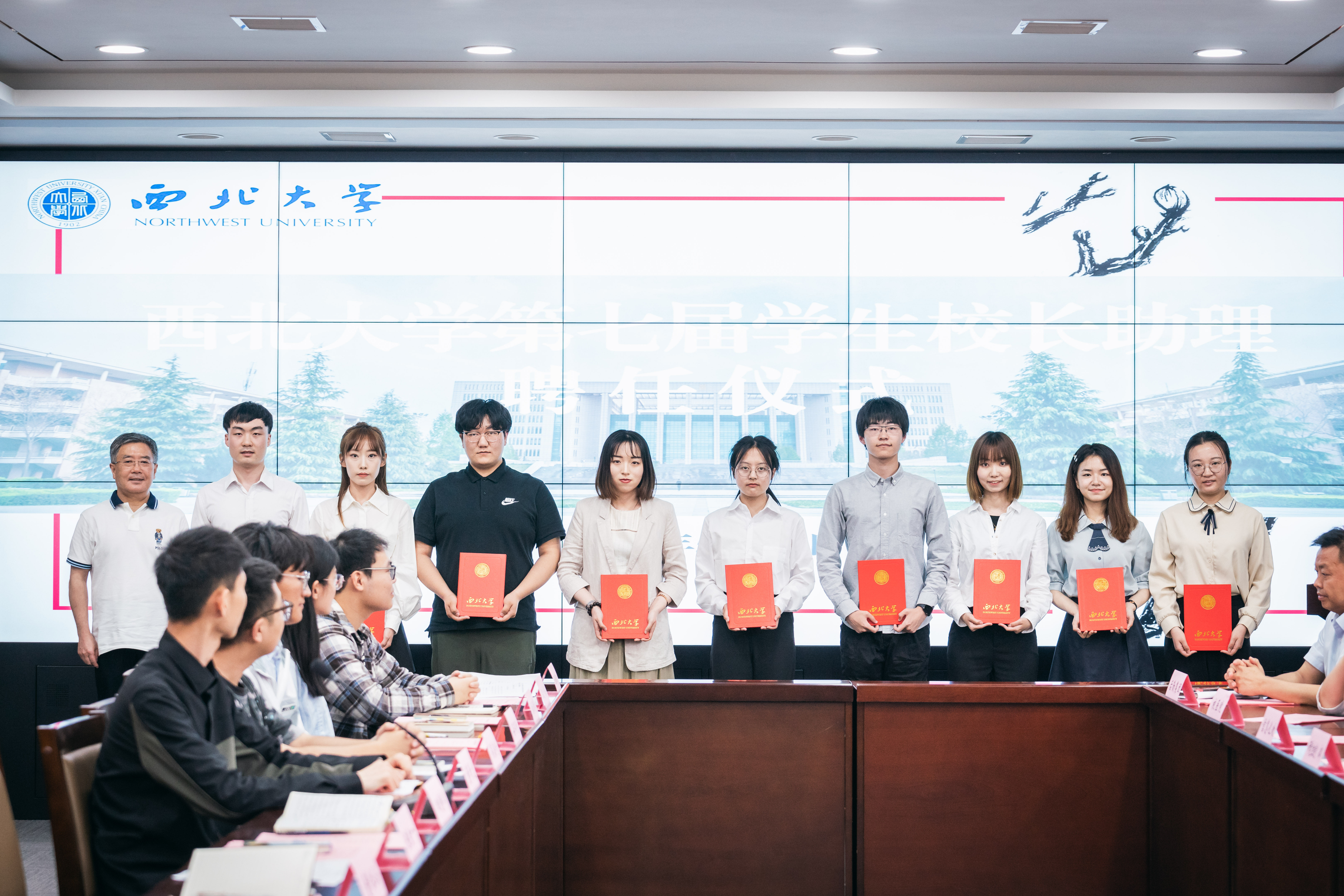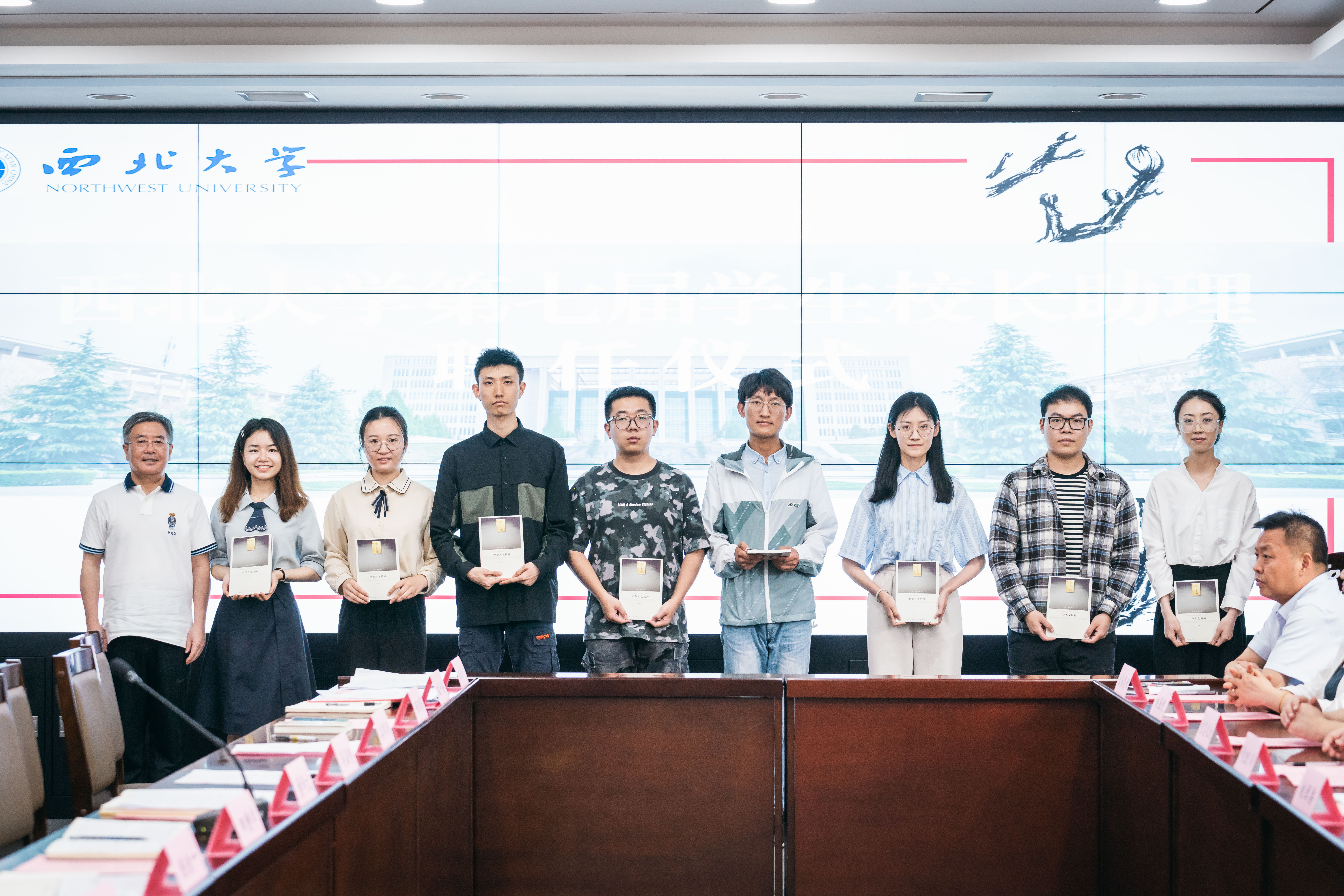 仪式上,郭立宏为第六届学生校长助理赠送了张岂之先生的著作《中华人文精神》,为化工学院田静卓、公共管理学院陈佳一、文学院董怡函、历史学院李瑞鑫、经济管理学院高佳梦、公共管理学院范昕、外国语学院何佳乐、数学学院梁奕宁和食品科学与工程学院杨宇等9位第七届学生校长助理颁发聘书。