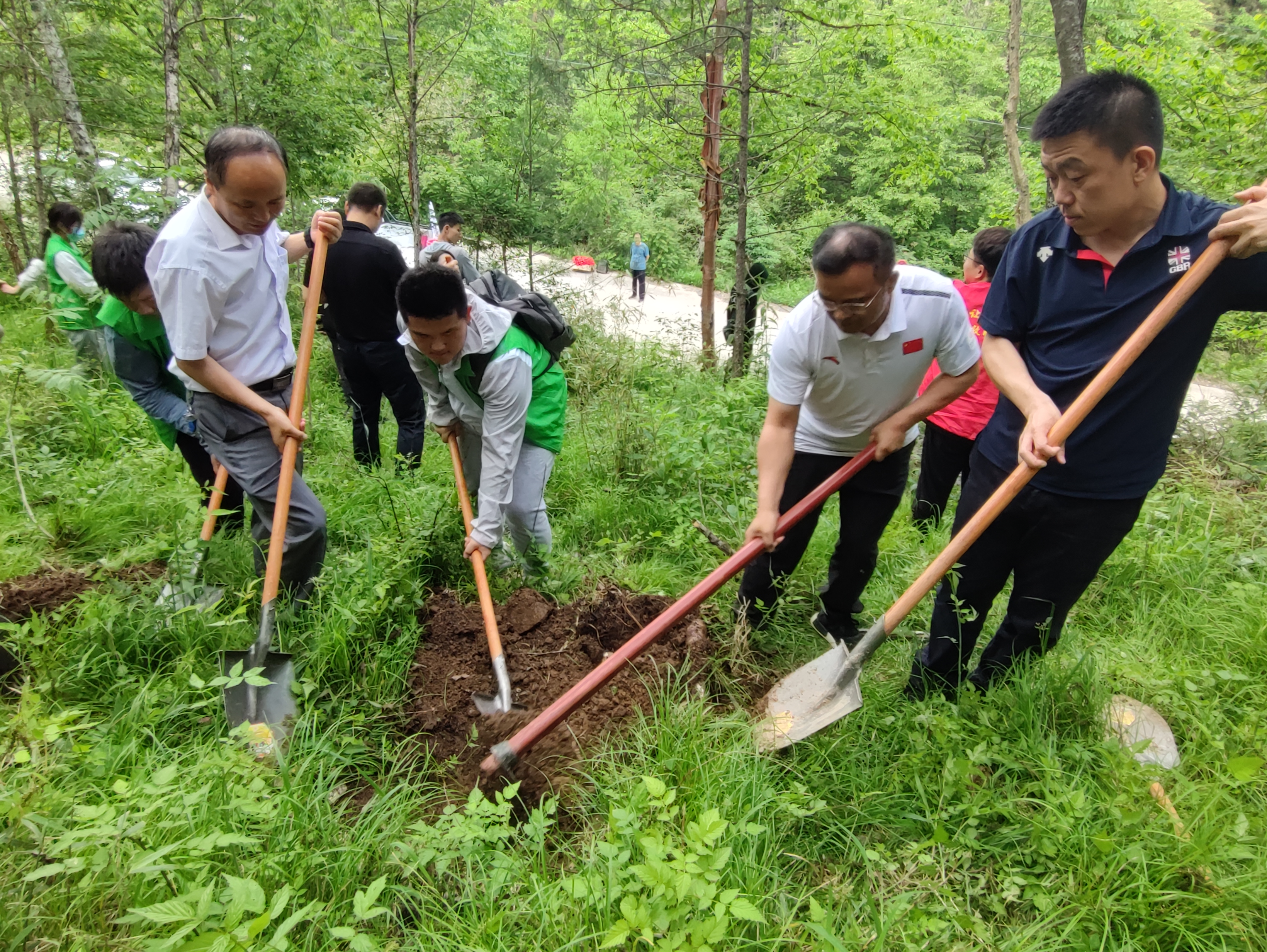 在观音山国家自然保护区,奚家米与师生一起栽种树苗,掩土浇水,共同种下100棵华山松。同学们在保护秦岭生态的劳动实践中涵养劳动美德,同庆建团百年。