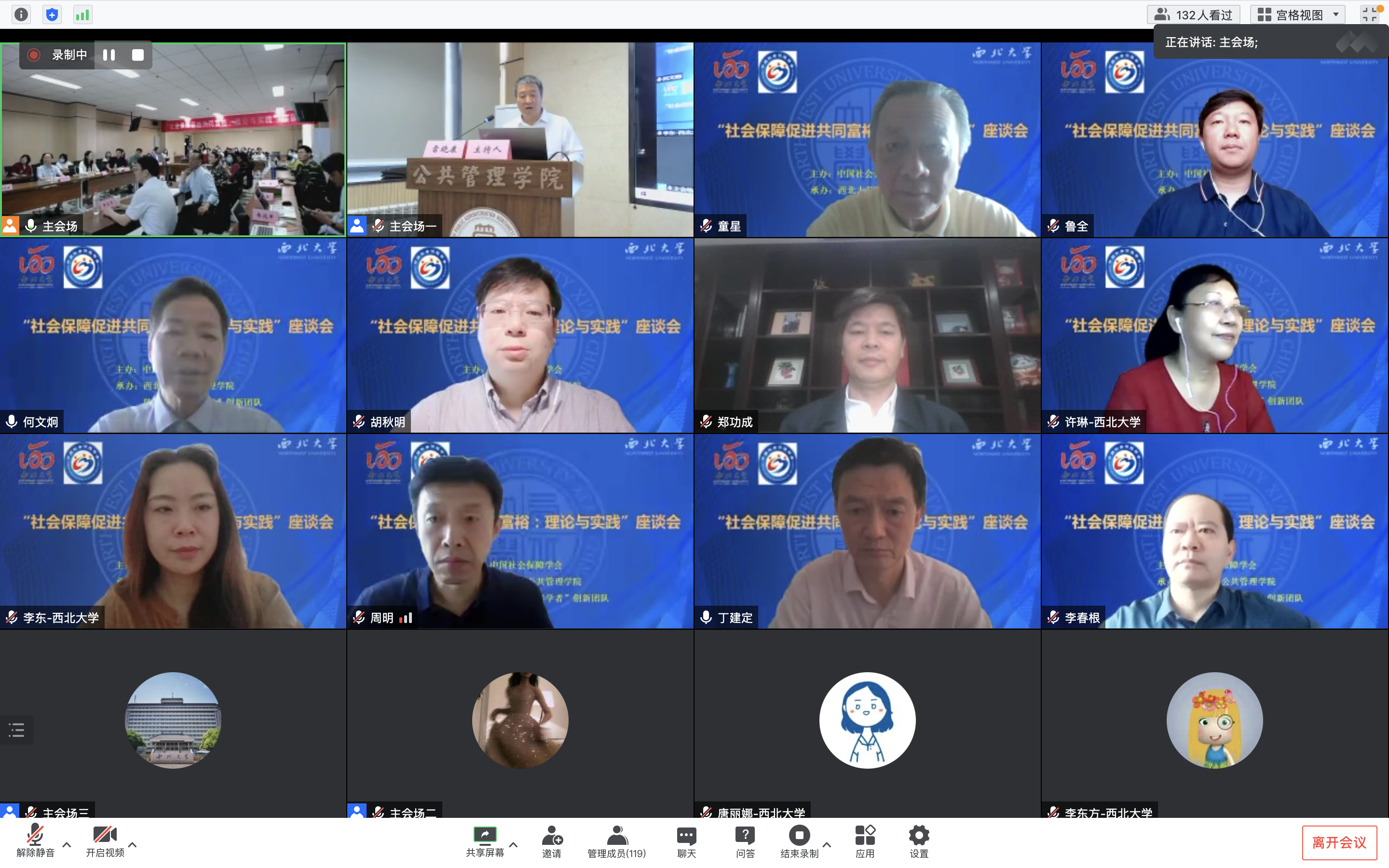 在主旨发言中,中国社会保障学会会长、中国人民大学郑功成教授,中国社会保障学会副会长、浙江大学何文炯教授,中国社会保障学会监事、南京大学童星教授,中国社会保障学会副会长、民政部政策研究中心王杰秀主任,中国社会保障学会副会长、华中科技大学丁建定教授,中国社会保障学会常务理事、江西财经大学李春根教授,中国社会保障学会常务理事、西南财经大学胡秋明教授,中国社会保障学会秘书长、中国人民大学鲁全副教授分别从“共同富裕与社会保障”“全国统一大市场建设与社会保障制度深化改革”“共同富裕的意涵评判与支撑体系”“筑牢共同富裕底线”“共同富裕的历史诠释”“深化社保改革与推进共同富裕”“多层次养老保险体系促进共同富裕的实践逻辑”“社会保障扎实推动共同富裕的重要关系”等方面围绕“社会保障促进共同富裕”这一主题进行了分享与讨论。本次座谈会的成功举办,为加强学界交流合作、推动西北地区乃至整个中国社会保障高质量发展和推进共同富裕贡献了学科力量。