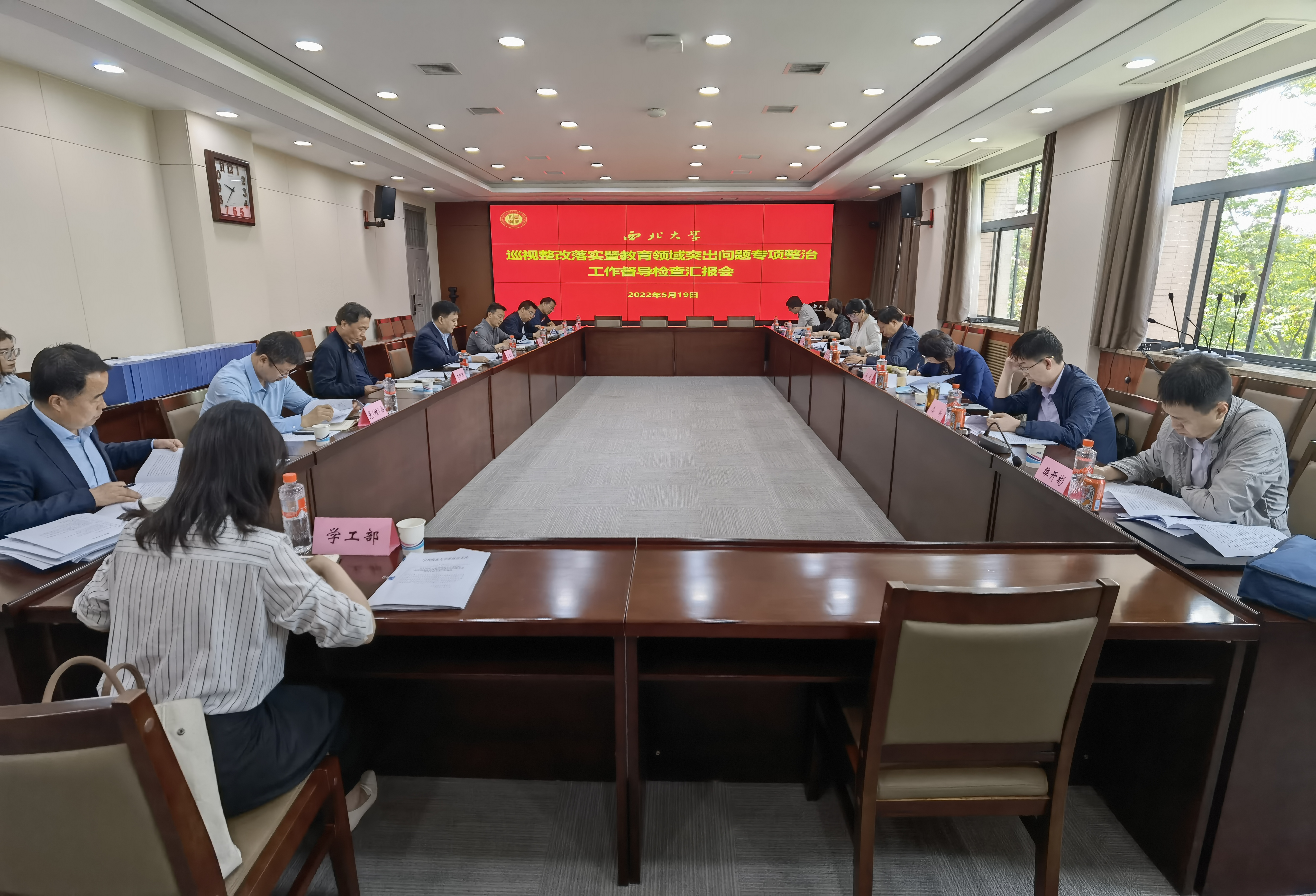 5月19日,省委巡视办副主任崔景文率省教育领域突出问题专项整治工作督导组一行7人来校实地督导检查巡视整改和专项整治工作进展情况。校党委书记王亚杰、校党委副书记赵作纽,校党委副书记、纪委书记、省监委驻校监察专员李邦邦,以及专项整治工作任务牵头部门主要负责人参加了汇报会。