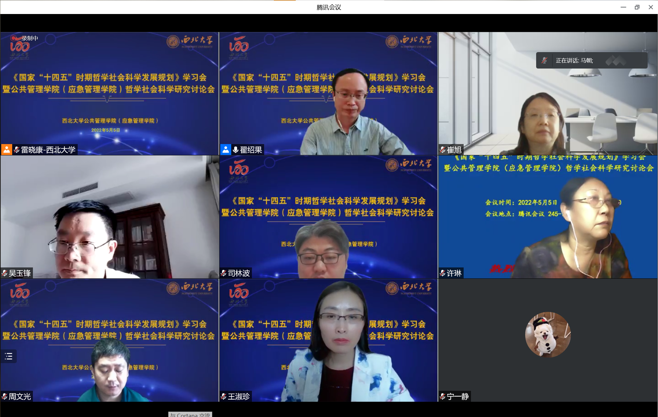 5月5日下午,乐鱼网页版页面登录公共管理学院(应急管理学院)线上召开了《国家“十四五”时期哲学社会科学发展规划》(以下简称《规划》)学习会暨公共管理学院(应急管理学院)哲学社会科学研究讨论会。校党委常委、副校长吴振磊出席并致辞,社科处、规划与学科处相关负责人及学院全体教师参加了会议。