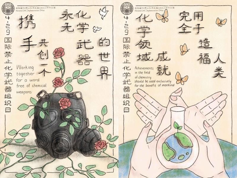 此前,为广泛宣传《禁止化学武器公约》,提高广大师生对履约工作的认识,鼓励师生利用专业所长为履约工作贡献力量,校团委、校科协联合化材学院组织开展了乐鱼网页版页面登录2022年纪念《禁止化学武器公约》生效25周年宣传作品征集活动,全校各相关单位积极参与,共征集到海报作品44件,视频作品11件。通过评审,将优秀作品报送至国家禁化武办,最终,乐鱼网页版页面登录10幅海报作品入围国家级网络投票环节,化材学院王亦卓同学获网络投票终选第一名。