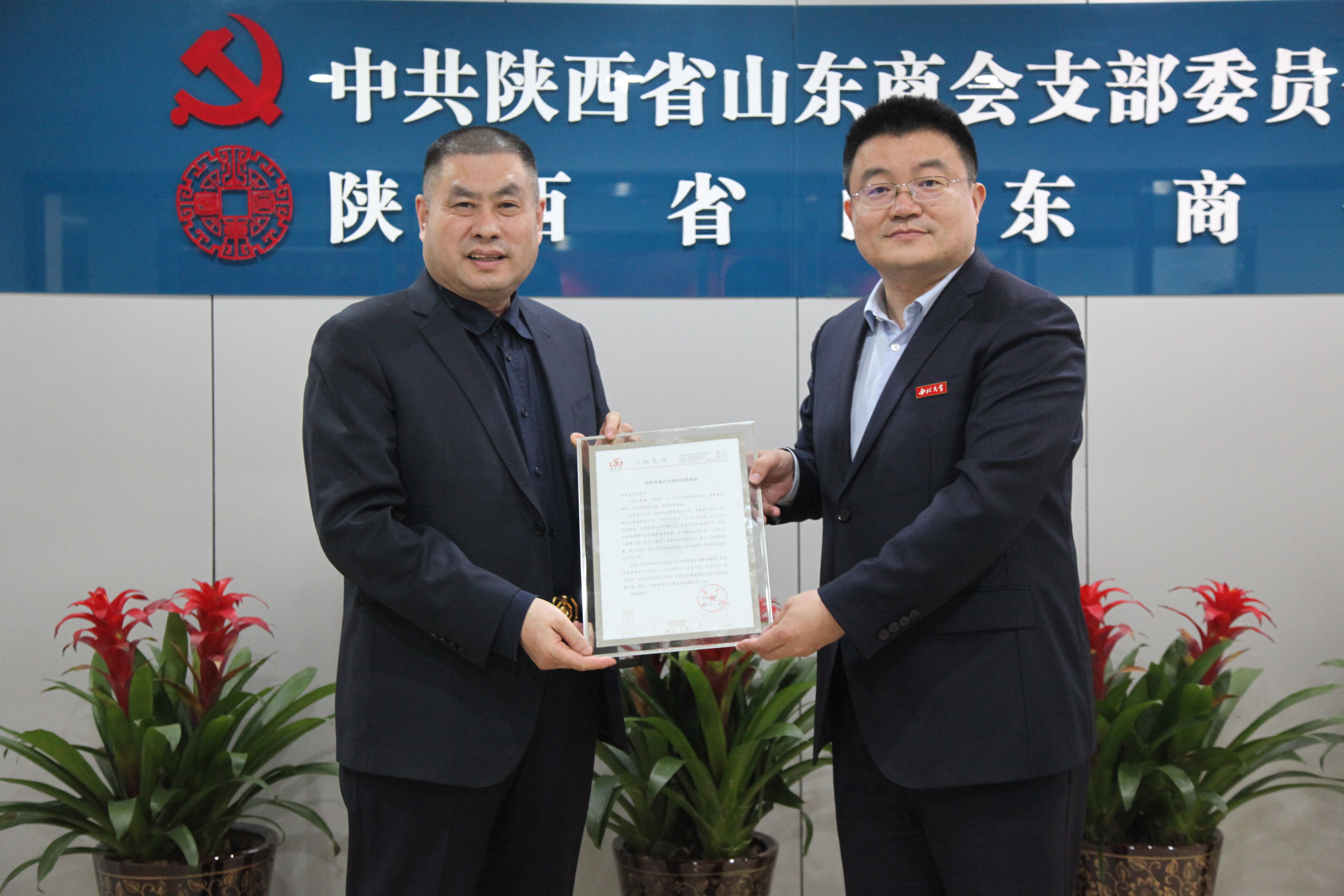 校党委副书记张清与陕西省山东商会党支部书记、会长孙忠宝互赠纪念品