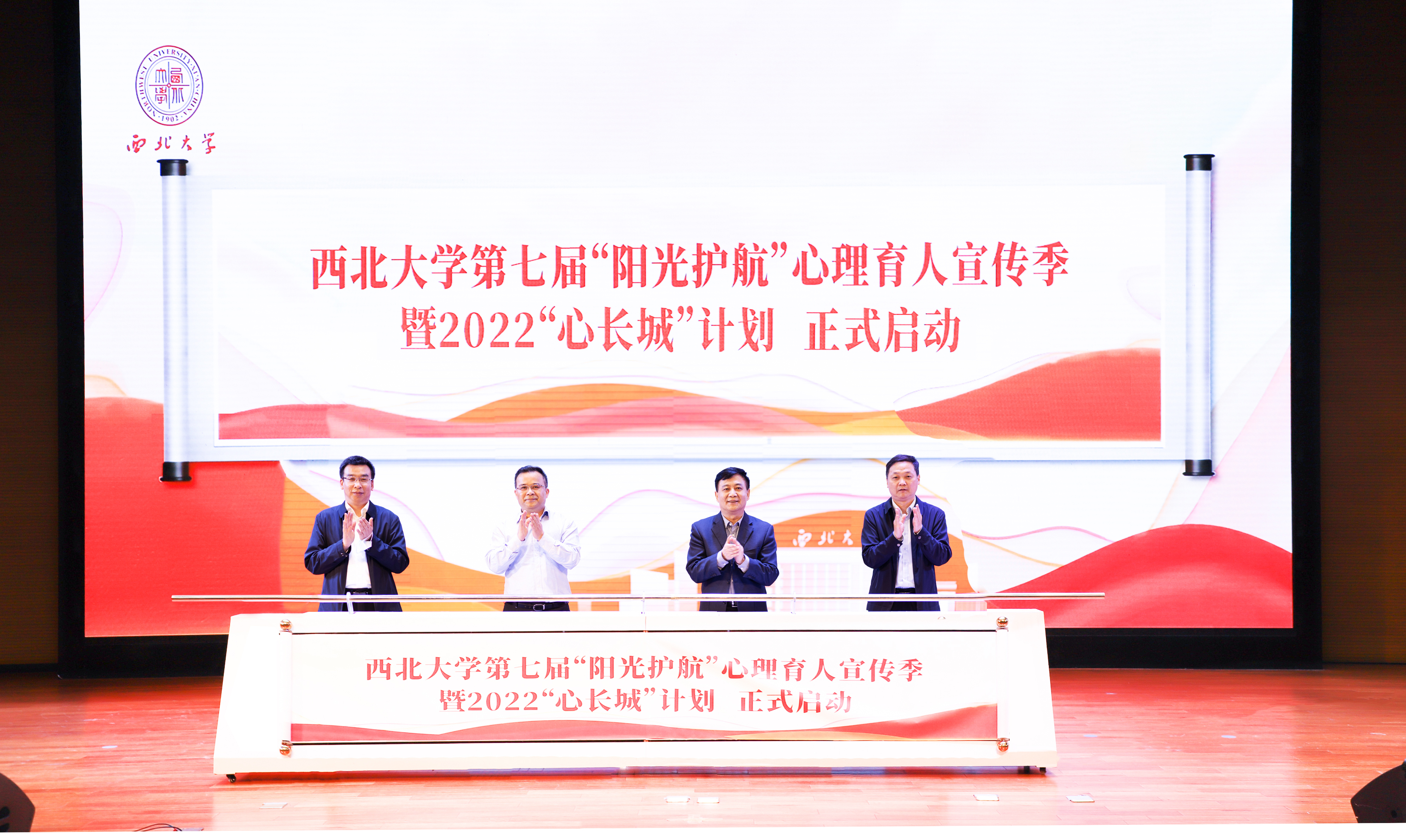 王亚杰、奚家米、陈富林、田明纲共同按下画轴启动仪式装置,正式开启乐鱼网页版页面登录第七届“阳光护航”心理育人宣传季实践活动。