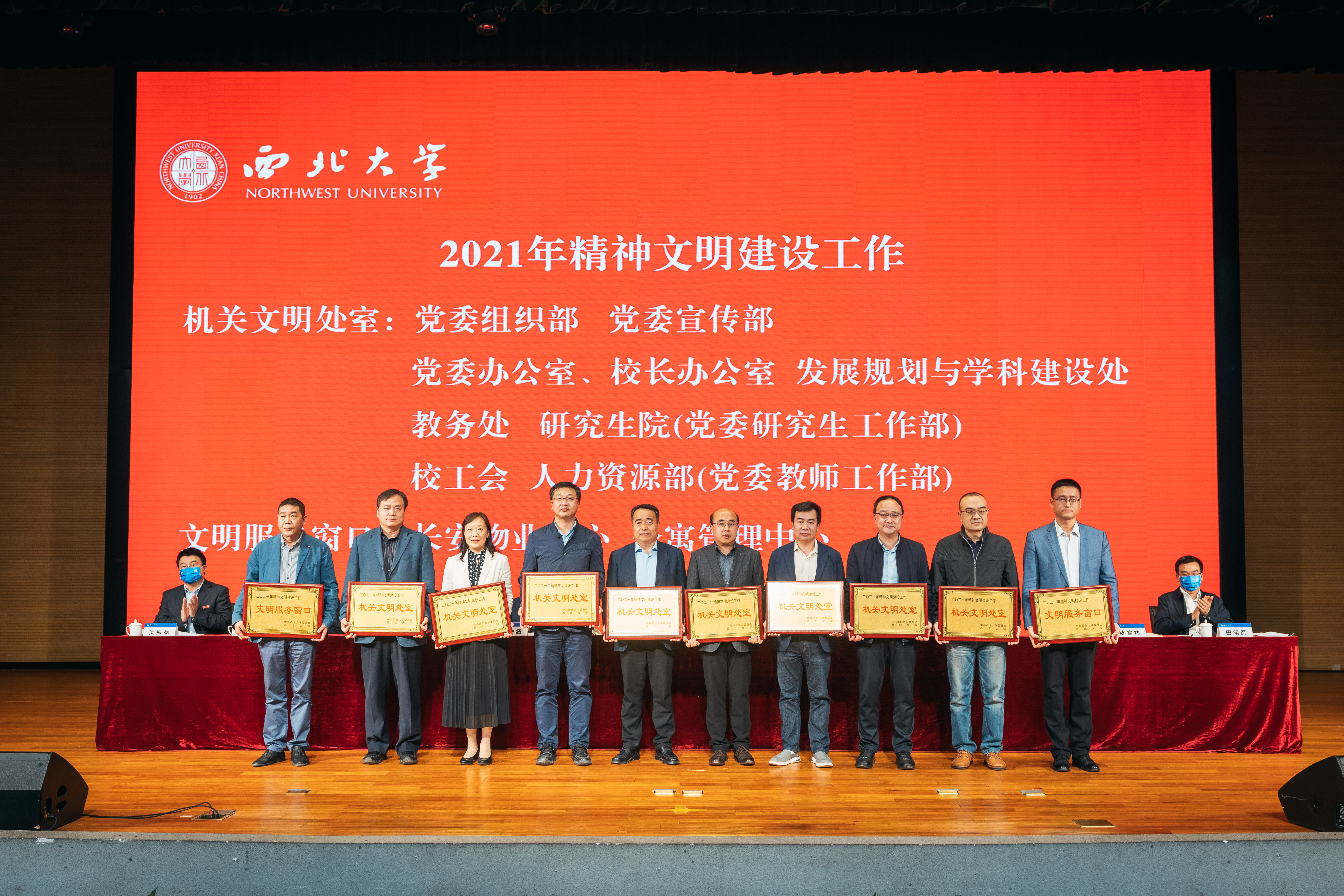 会上,与会领导为2021年精神文明建设工作“先进单位”“机关文明处室”“文明服务窗口”和2020-2021年稳定安全先进单位颁奖。(图/马骞 刘杰 冯奕忠 塔力哈尔·叶尔江 )
