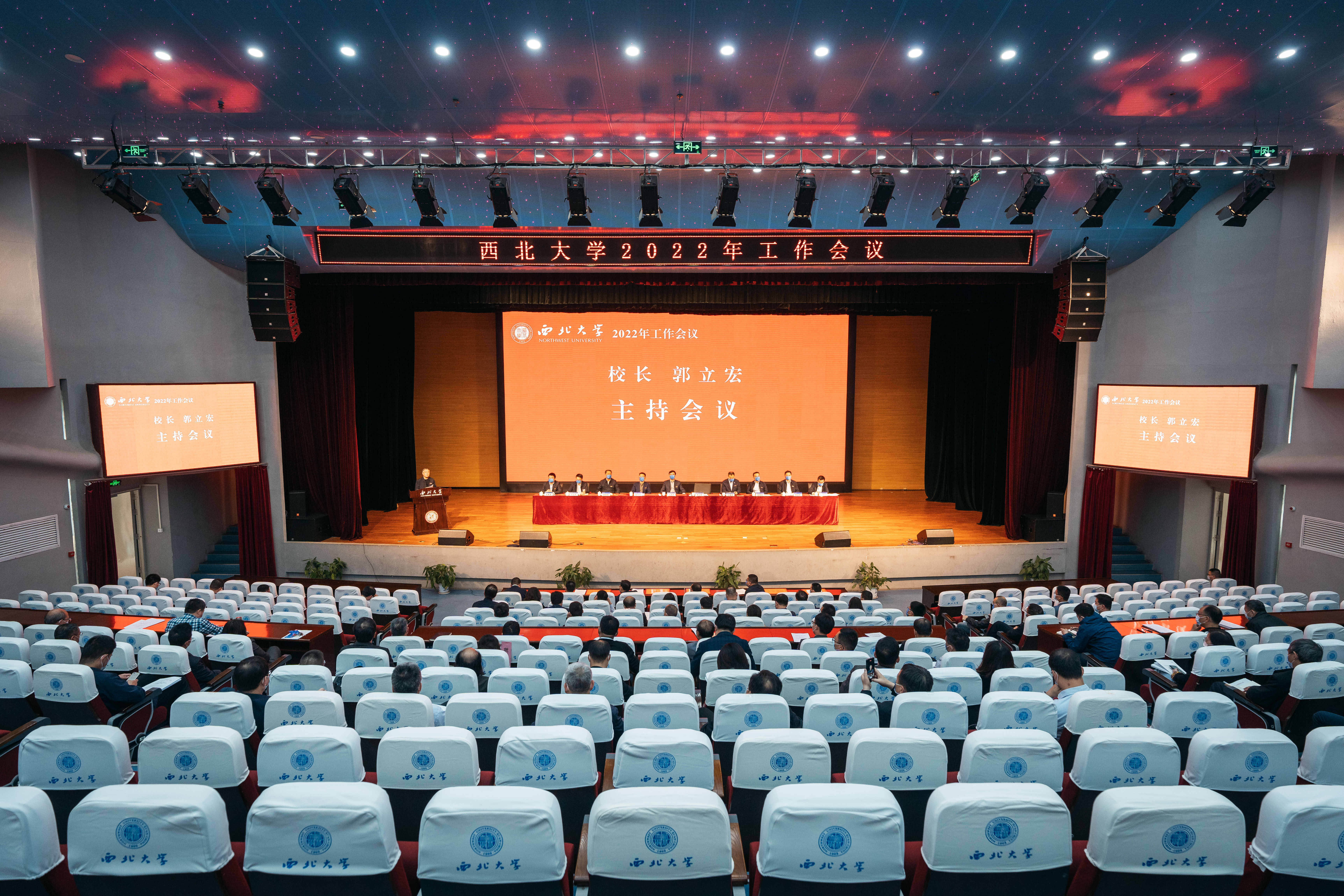 4月21日,学校召开2022年工作会议。全体校领导、各单位主要负责人在主会场参会。全校副处级干部、无行政级别院(系)和实体研究机构负责人以及部分师生代表在分会场参会。会议由校长郭立宏主持。