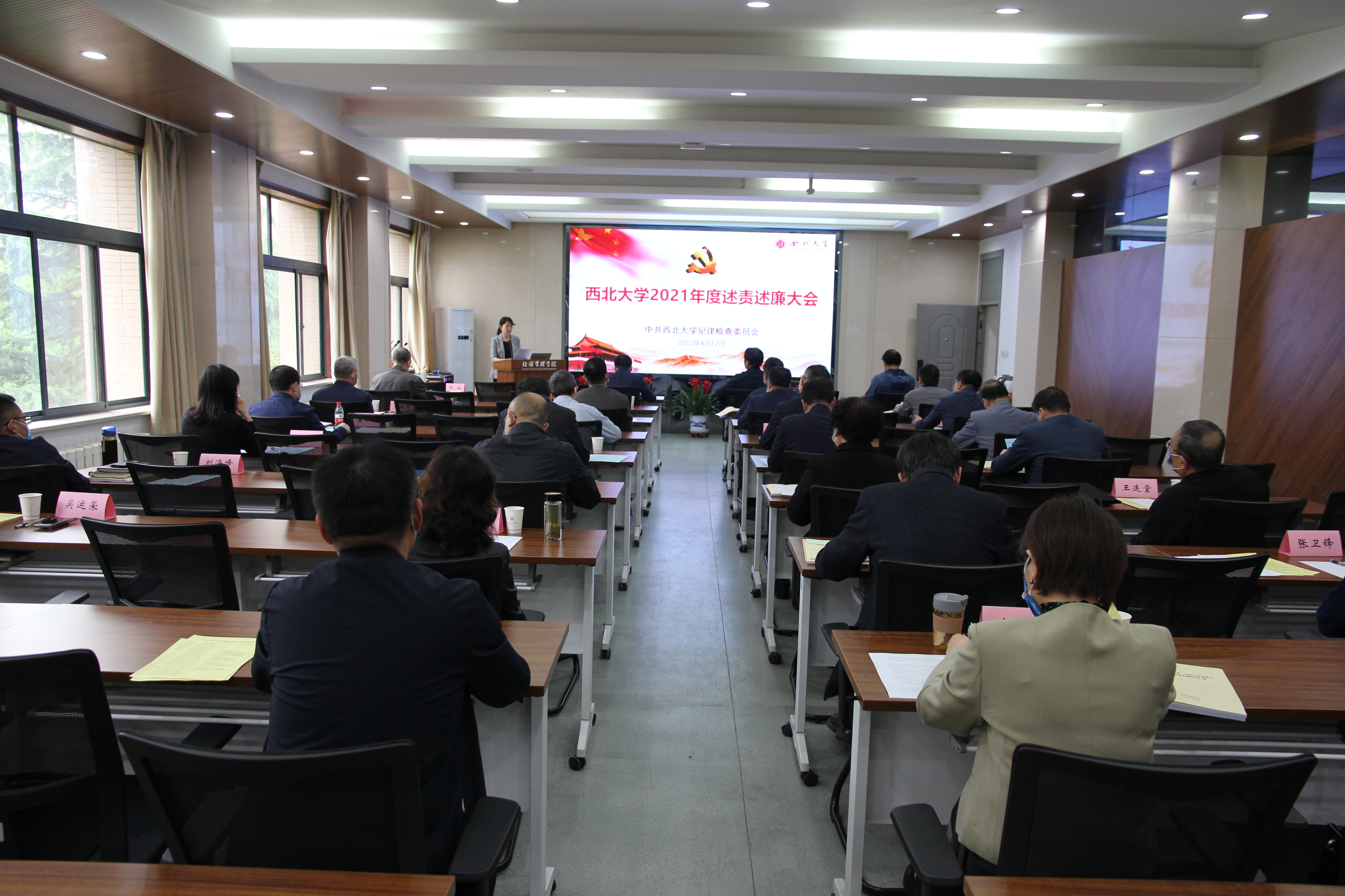 4月12日,校纪委在长安校区召开纪委全委(扩大)会,听取校内党委(直属党支部)书记2021年度述责述廉报告并进行测评。校党委副书记、纪委书记、省监委驻校监察专员李邦邦,校党委常委、党委宣传部部长田明纲,校纪委委员,党群部门主要负责人,部分党代会代表和27位现场述责述廉的基层党组织书记参加会议。