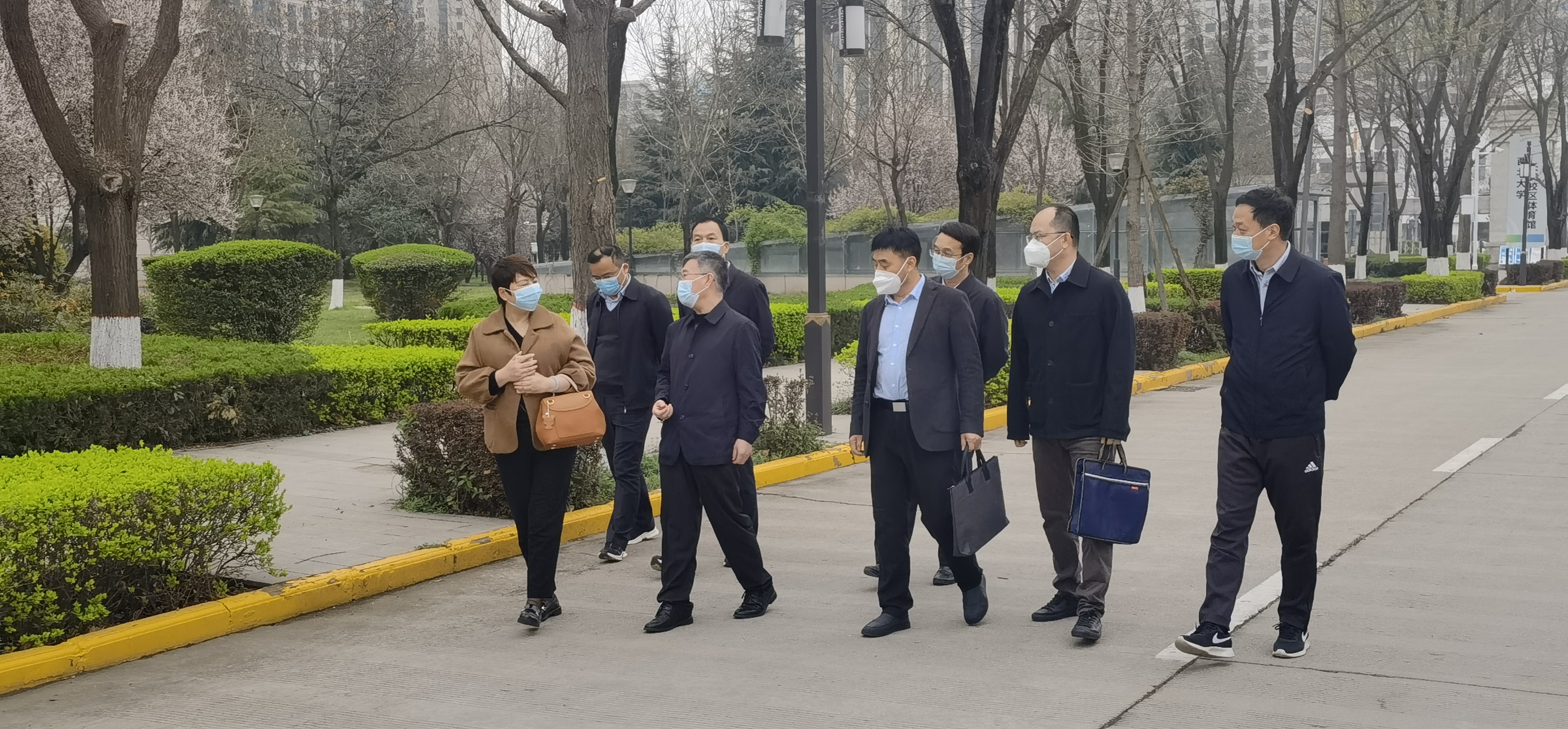 3月18日,省纪委监委驻省教育厅纪检监察组副组长易红彬一行到长安校区检查指导疫情防控工作。检查前,校长郭立宏向检查组介绍了学校疫情防控整体情况。校党委副书记吕建荣,校党委常委、副校长奚家米、张远军、陈富林及相关部门负责人陪同检查,并汇报相关工作情况。