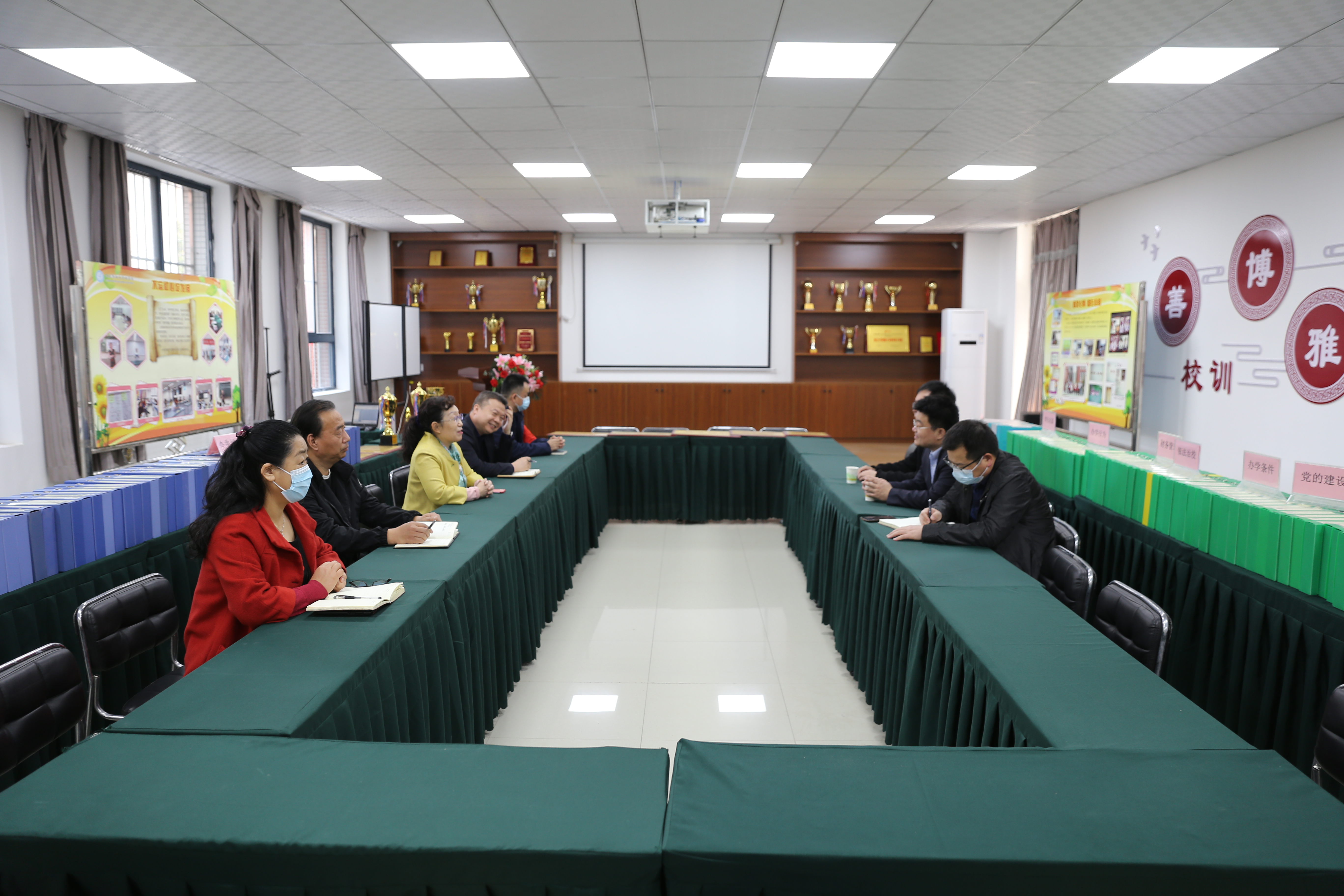 随后,调研组与大学城班子成员进行了座谈交流。大学城学校负责人对调研组一行表示欢迎,并对大学长期以来对基础教育给予的关心和支持表示感谢。她汇报了大学城学校发展建设情况、目前急待解决的问题、今后的发展规划等。会议还就拓展办学空间、继续加强门禁管理、严格落实疫情防控要求、守牢校园安全底线、保障师生健康安全等方面工作进行了研究部署。
