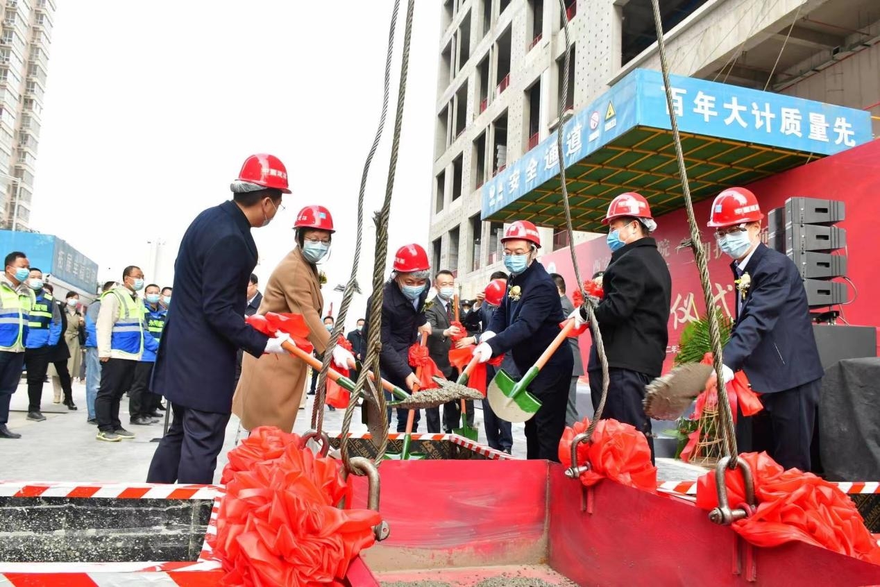 与会嘉宾共同浇筑主体封顶最后一方混凝土