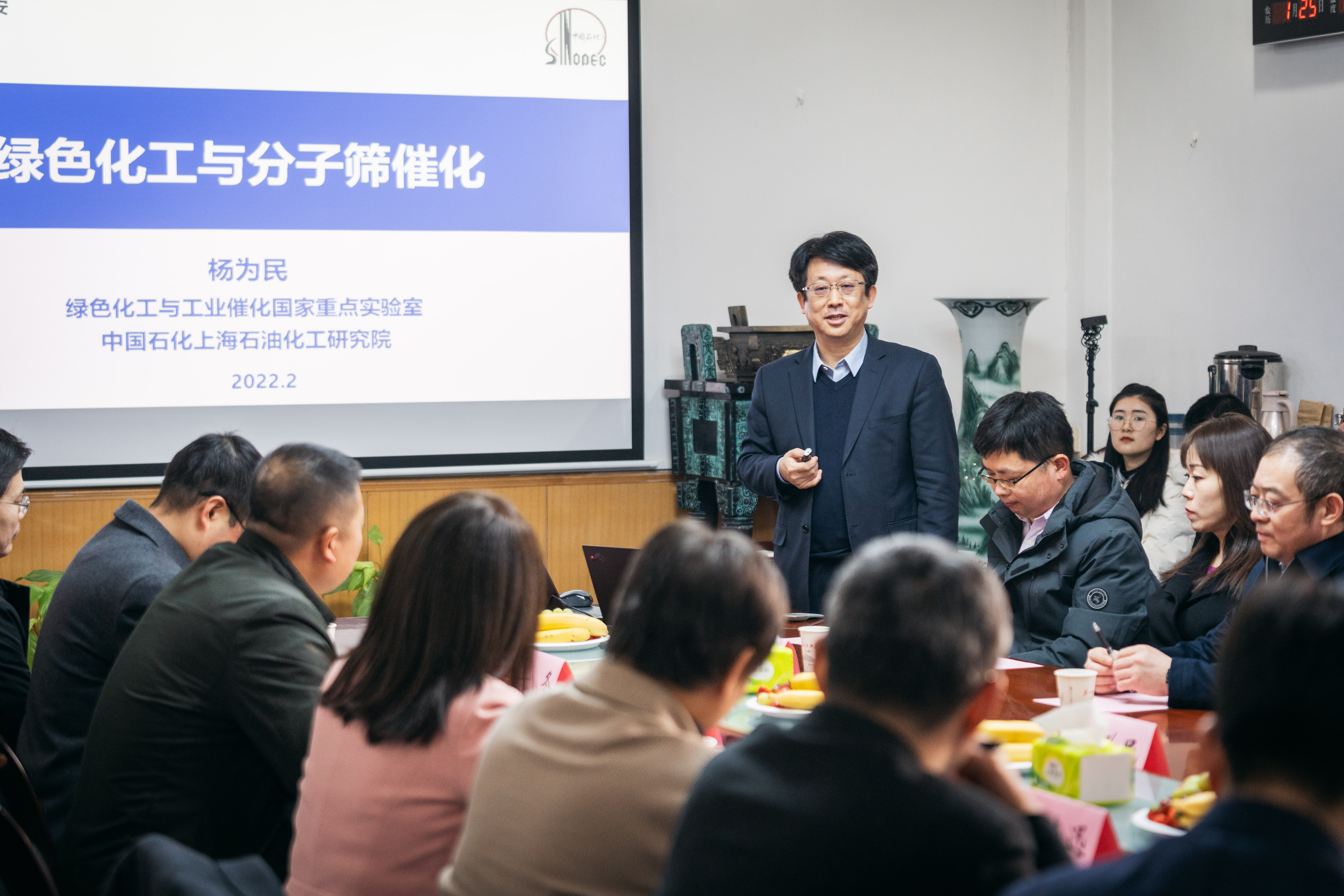 杨为民院士以绿色化工技术为主题,从我国化工产业的重要性及其高能耗、高碳排放的特性引入,指出“双碳”目标对化石能源的高效清洁利用和绿色化工技术开发提出了更高新要求。他重点介绍了基于分子筛催化材料的绿色化工技术,并结合自身科学研究和工程实践经验,从催化绿色化、原料绿色化、资源高效利用、过程节能低碳四个方面探讨了绿色化工技术的实现与创新,系统介绍了纯乙烯分子筛气相法乙苯生产技术、生物乙醇法制乙苯技术、稀乙烯增值转化制乙苯技术和低苯烯液相烷基化制乙苯技术等四项重要技术研发过程,详细介绍了这些技术中分子筛的开发、反应器的设计和全流程反应设计的关键难点问题及相应的解决方案。最后,杨为民院士对团队在新型分子筛催化材料的创制和应用领域的最新成果做了介绍,其团队应用高通量分子筛合成技术,成功创制得到SCM-14和SCM-15两种分子筛材料,并开发了SCM-14在新型丁烯异构化催化剂中的应用,实现了我国原创分子筛催化材料的首次工业应用。