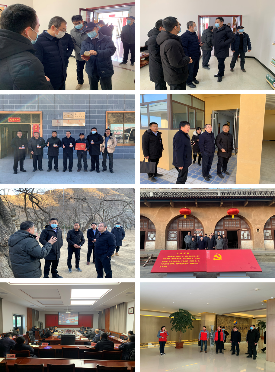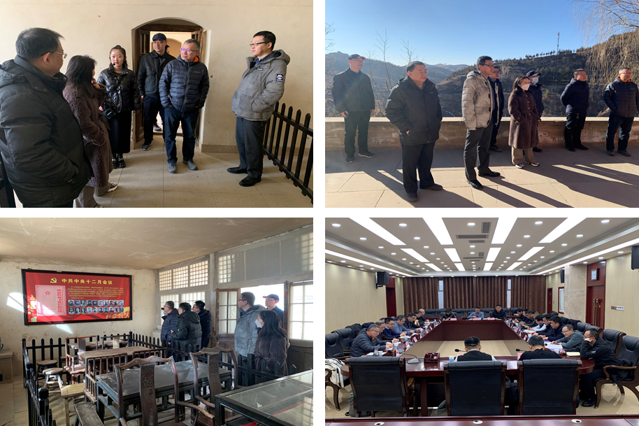 在米脂县调研期间,调研组一行在杨家沟革命纪念馆开展了党史学习教育,参观了毛泽东等老一辈无产阶级革命家旧居、中共中央十二月会议旧址等革命旧址,学习领会了“转战陕北”的重要历史事件。在全国最大的城堡式窑洞庄园——姜氏庄园、李自成行宫考察调研了当地文物保护相关工作情况。在米脂县县委常委、常务副县长樊小荣主持召开的座谈会上,双方就米脂特色农产品营销、山地苹果深加工、非遗传承、文物保护、革命旧址的开发利用、医疗卫生合作等达成了合作意向。