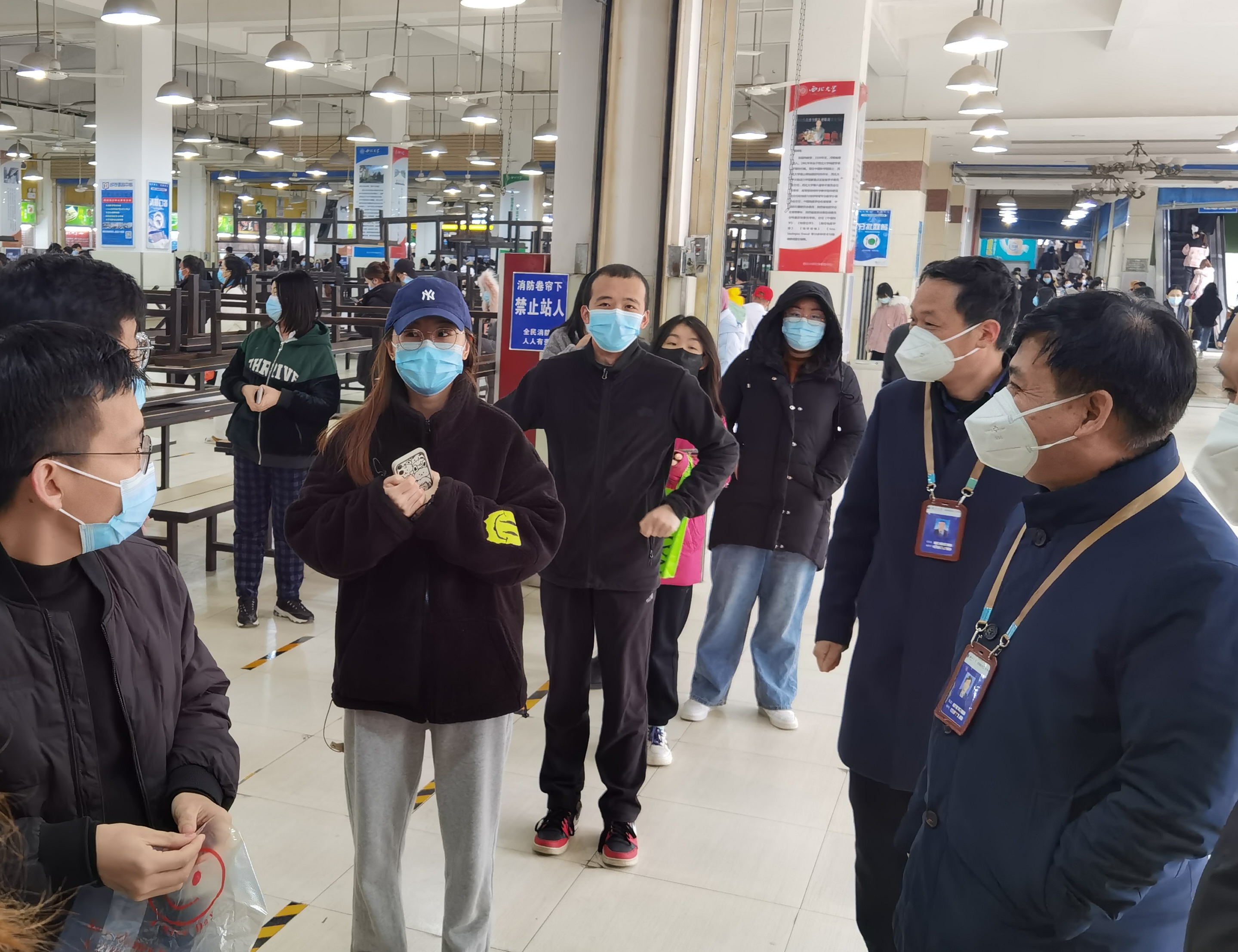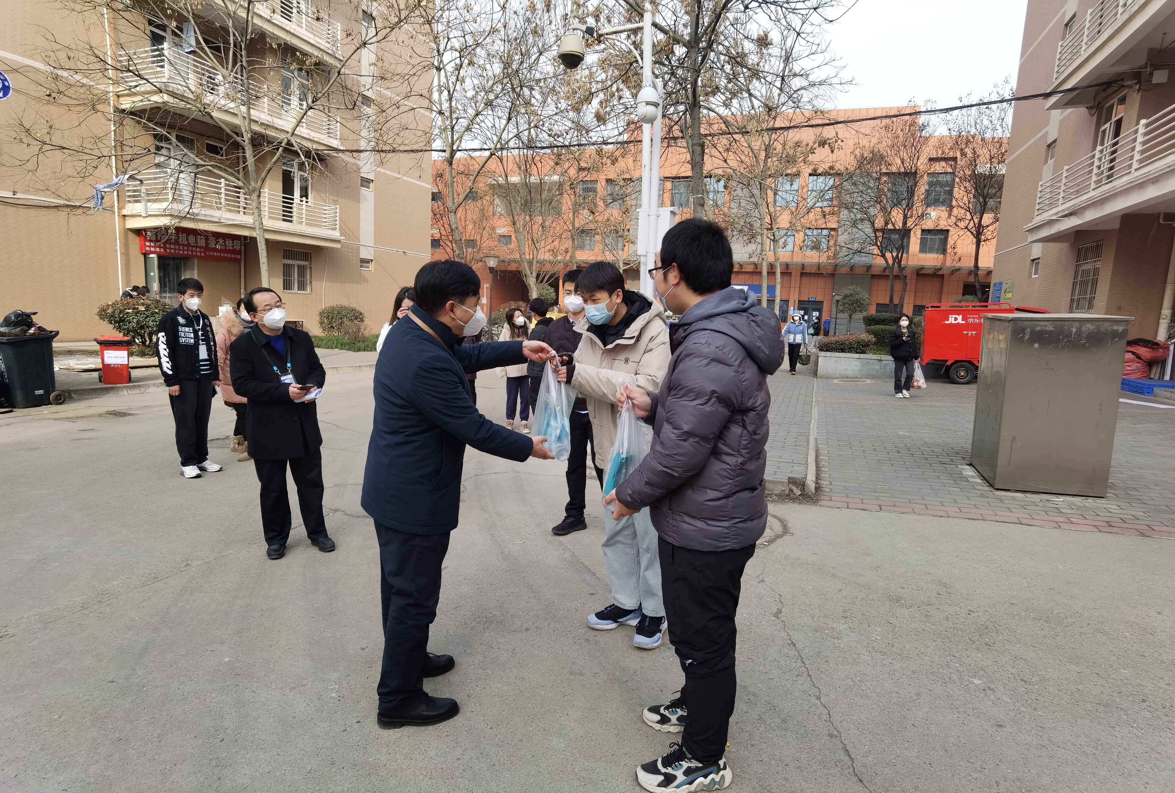 会后,王亚杰带队视察了长安校区学生食堂、宿舍、超市、核酸检测现场等地,重点了解学生食堂排队带餐和超市货物供应情况,为经济困难学生发放防疫物资,慰问在核酸检测现场维持秩序的学生志愿者及家属区党员志愿者服务队,并要求相关部门全力做好师生基本生活保障。