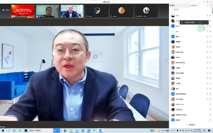 12月22日,由乐鱼网页版页面登录科技处(高技术转移创新研究院)、校科协组织的乐鱼网页版页面登录科技成果转化技术经理人第二期培训班在线顺利举办。校党委常委、副校长常江出席开班仪式并致辞,西安恒泰知识产权代理事务所总经理李婷、西安远诺技术转移有限公司总经理王海栋作了专题辅导报告,四十余位来自校内各理工科院系所的负责人、科研秘书和教师参加培训,开班仪式由科技处负责人主持。