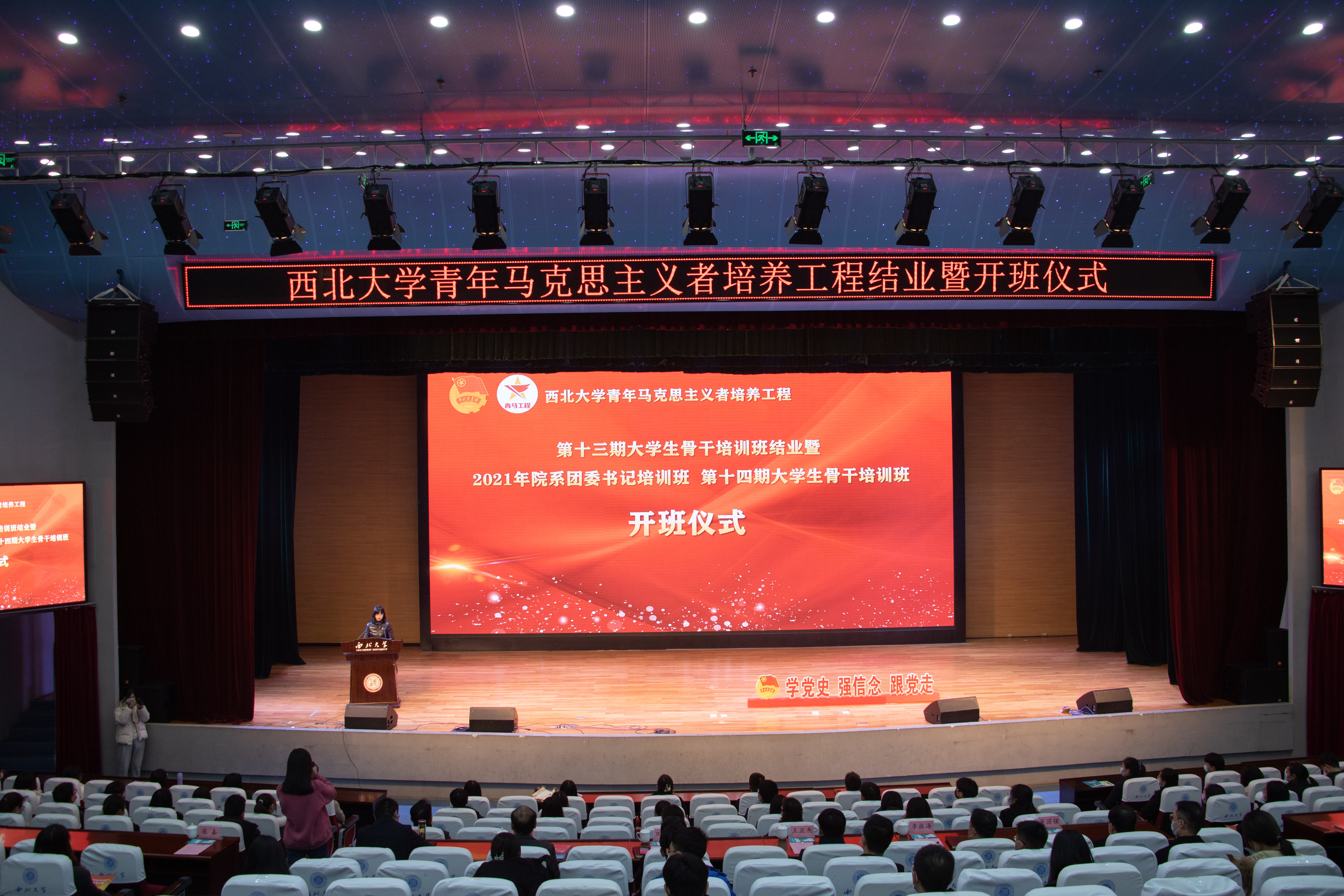 12月15日下午,乐鱼网页版页面登录青年马克思主义者培养工程第十三期大学生骨干培训班结业暨第十四期大学生骨干培训班、2021年院系团委书记培训班开班仪式在长安校区举行,“三创”孵化基地和各院(系)设分会场。校党委书记王亚杰出席开班式,并围绕学习领会党的十九届六中全会精神,为师生作了“百年党史铸伟业 青春筑梦新征程”的报告。