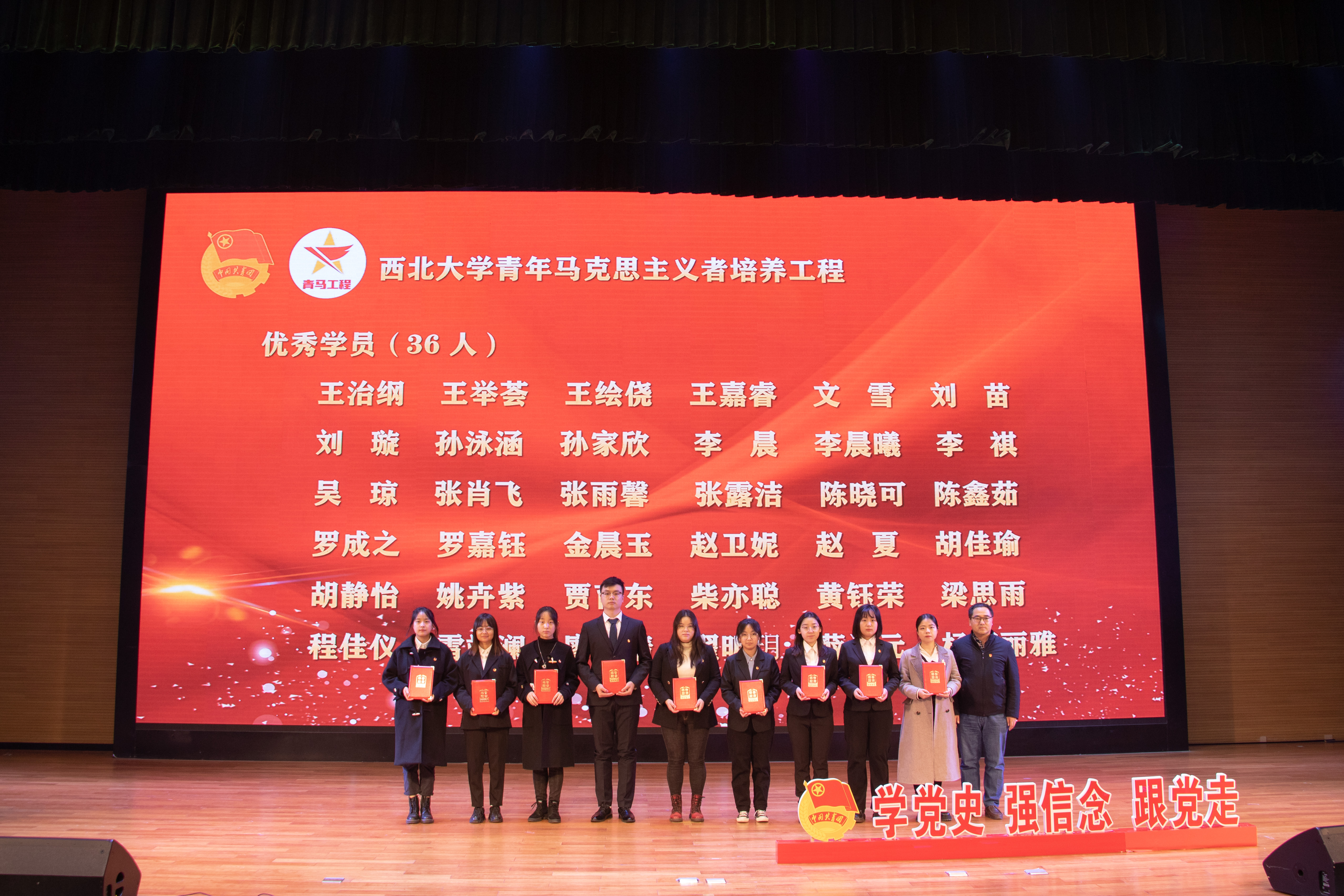 校党委常委、党委宣传部部长田明纲,学校相关部门负责人,以及第十三期大学生骨干培训班班主任和学员代表、2021年院系团委书记培训班学员、第十四期大学生骨干培训班班主任和学员参加了仪式。