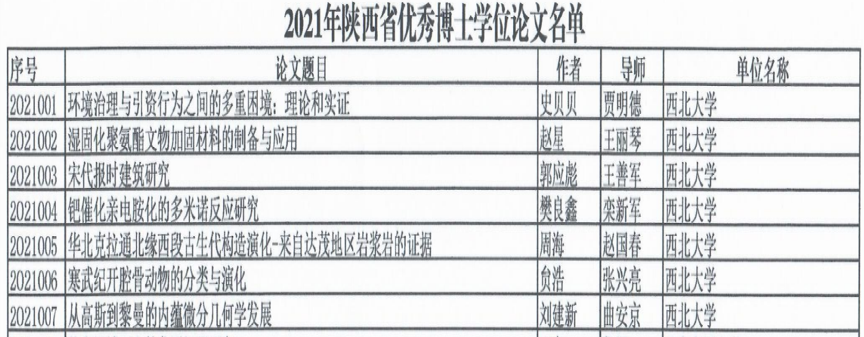 陕西省优秀博士学位论文评选工作是陕西省对高等学校博士生学位论文水平和博士生培养质量评价的一项重要举措,是全省范围内博士生学位论文的最高水平展示,对提升博士生培养质量具有非常积极的促进作用。根据《陕西省优秀博士学位论文评选办法》,评选工作每年进行一次,每次评选出的陕西省优秀博士学位论文数量一般不超过当年博士学位授予人数的3%。