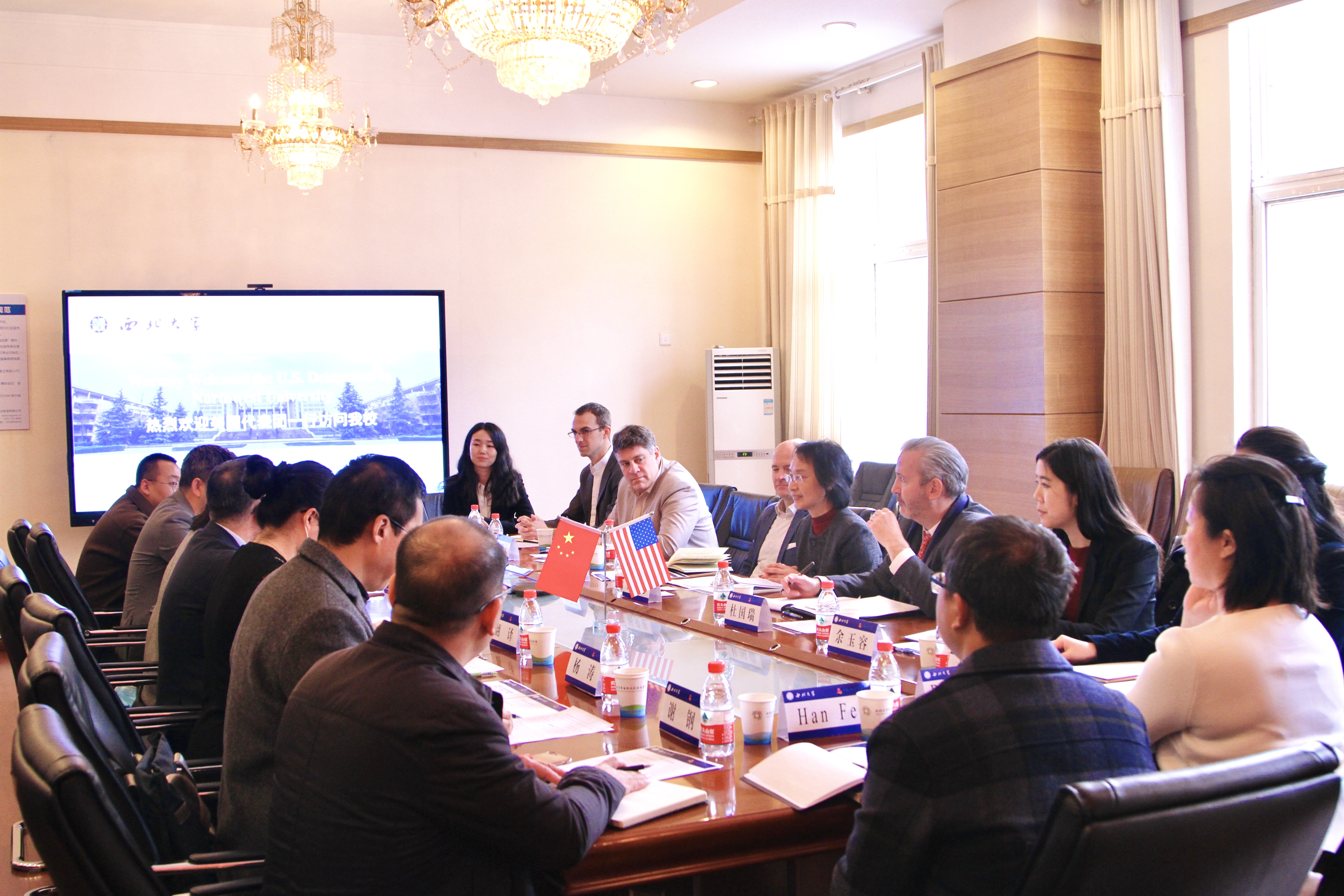 12月7日下午,美国驻华大使馆环境科技参赞杨舜惠一行11人访问乐鱼网页版页面登录。陕西省外事办公室礼宾处、学校科技处、国际部等单位负责人参加来访座谈。校长郭立宏出席座谈会。