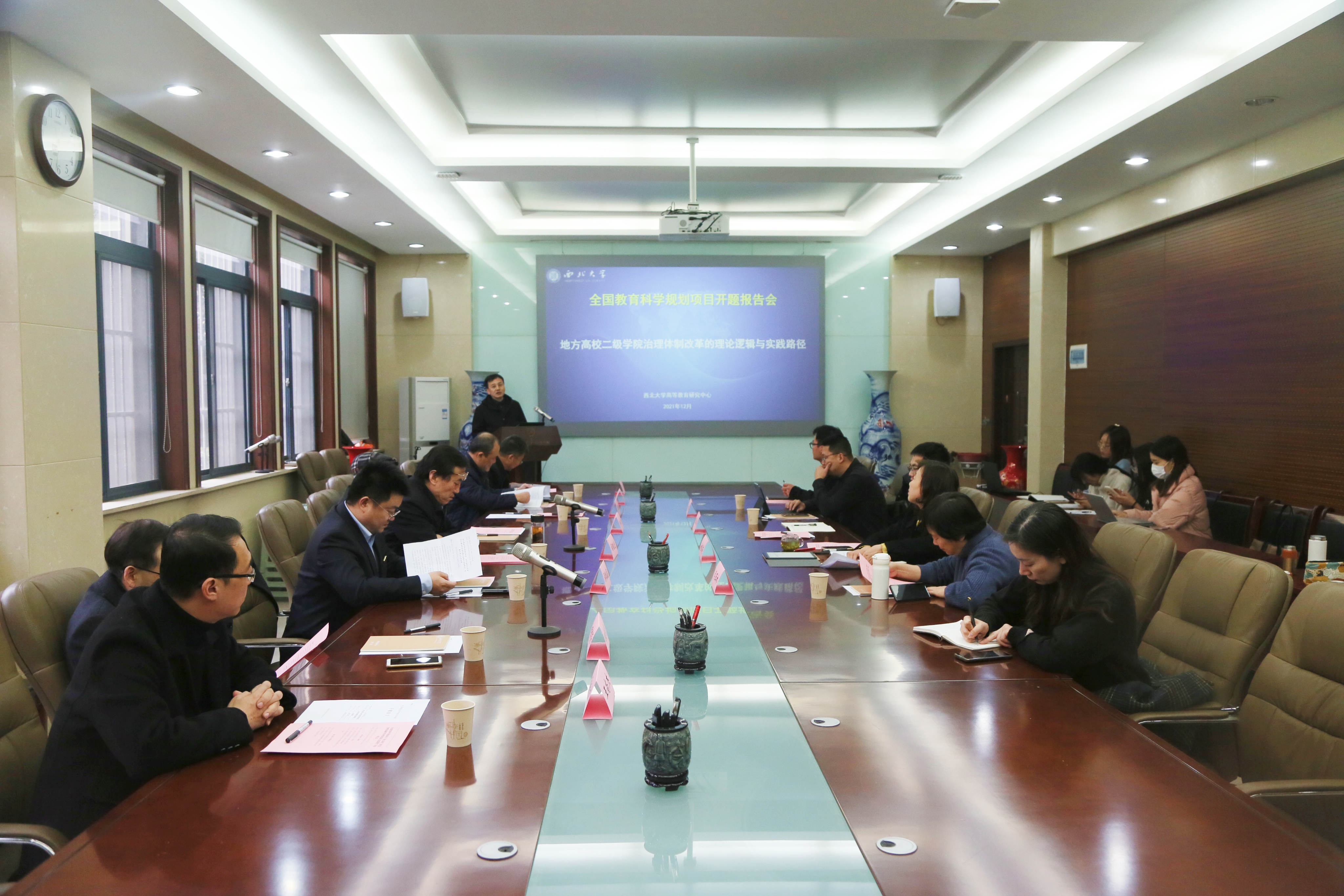 本次报告会由陕西省社会科学院党组书记、院长司晓宏教授担任专家组组长,西安外国语大学原党委书记郝瑜教授,陕西师范大学教育学院原副院长田建荣教授,西安外国语大学孙华教授,陕西科技大学罗云教授担任专家组成员。校党委常委、副校长吴振磊,陕西省教育科学研究院科研规划部副主任王尚杰出席会议并致辞,课题组全体成员参加报告会。会议开幕式由社科处负责人主持。
