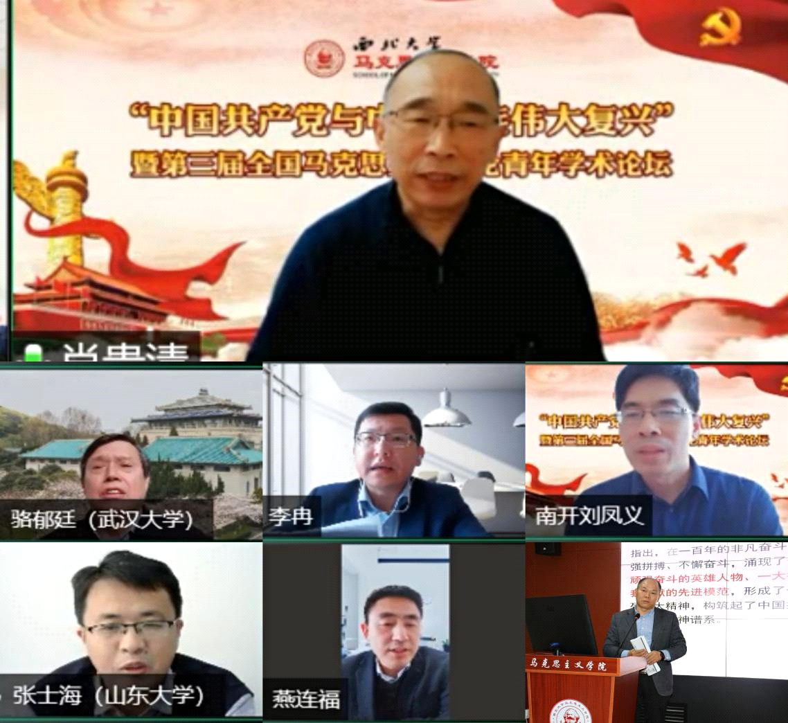 11月28日,由乐鱼网页版页面登录马克思主义学院协同清华大学习近平新时代中国特色社会主义思想研究院等单位联合举办的“中国共产党与中华民族伟大复兴”暨第三届全国马克思主义理论青年学术论坛在乐鱼网页版页面登录长安校区以线上线下相结合的方式举行。乐鱼网页版页面登录党委副书记、马克思主义学院院长吕建荣出席会议并致辞。清华大学马克思主义学院教授肖贵清、武汉大学马克思主义学院院长骆郁廷、复旦大学马克思主义学院院长李冉、南开大学马克思主义学院院长刘凤仪、山东大学马克思主义学院院长张士海、西安交通大学马克思主义学院院长燕连福等出席了本次论坛,来自全国70多所高校的优秀硕博研究生,以及乐鱼网页版页面登录马克思主义学院师生代表参加了论坛。开幕式由乐鱼网页版页面登录马克思主义学院党委负责人主持。