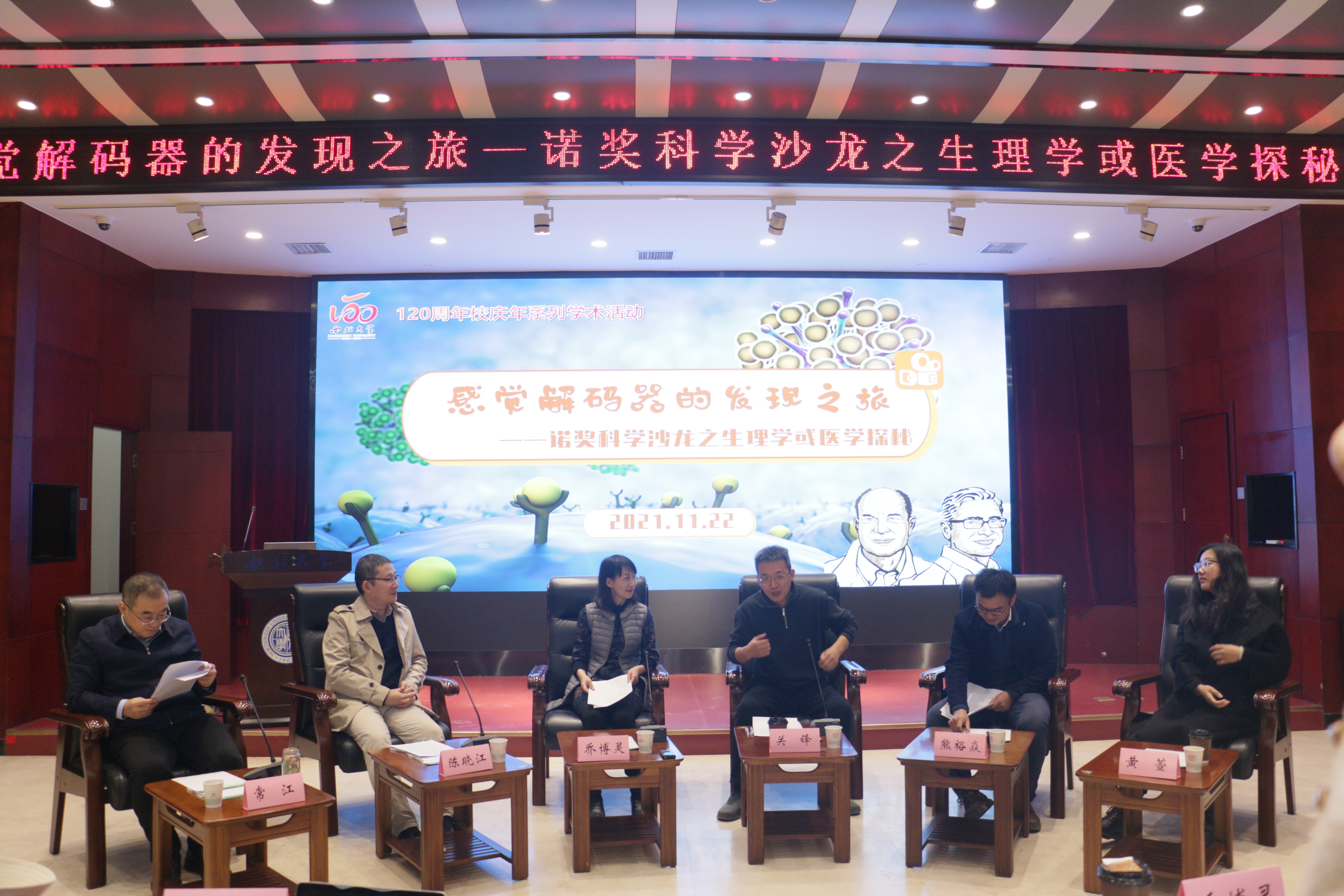 11月22日,120周年校庆系列学术活动高端科普活动之诺奖科学沙龙:“解码器的发现之旅——诺奖科学沙龙之生理学或医学探秘”在乐鱼网页版页面登录太白校区召开。校党委常委、副校长常江致辞,并作为嘉宾参加讨论交流环节。科技处负责人、生命科学与医学部师生代表参加会议。会议由科技处负责人主持。