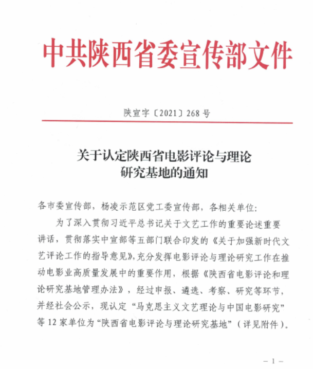 近日,中共陕西省委宣传部公布首批陕西省电影评论与理论研究基地名单,本次全省共认定12家单位。由乐鱼网页版页面登录张阿利教授作为首席专家申报的“中国西部电影研究”基地成功入选。