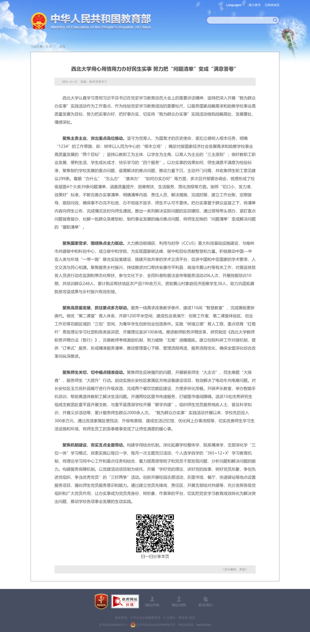 近日,教育部网站以《乐鱼网页版页面登录用心用情用力办好民生实事努力把“问题清单”变成“满意答卷”》为提,报道了乐鱼网页版页面登录党史学习教育“我为群众办实事”积极进展和工作经验。