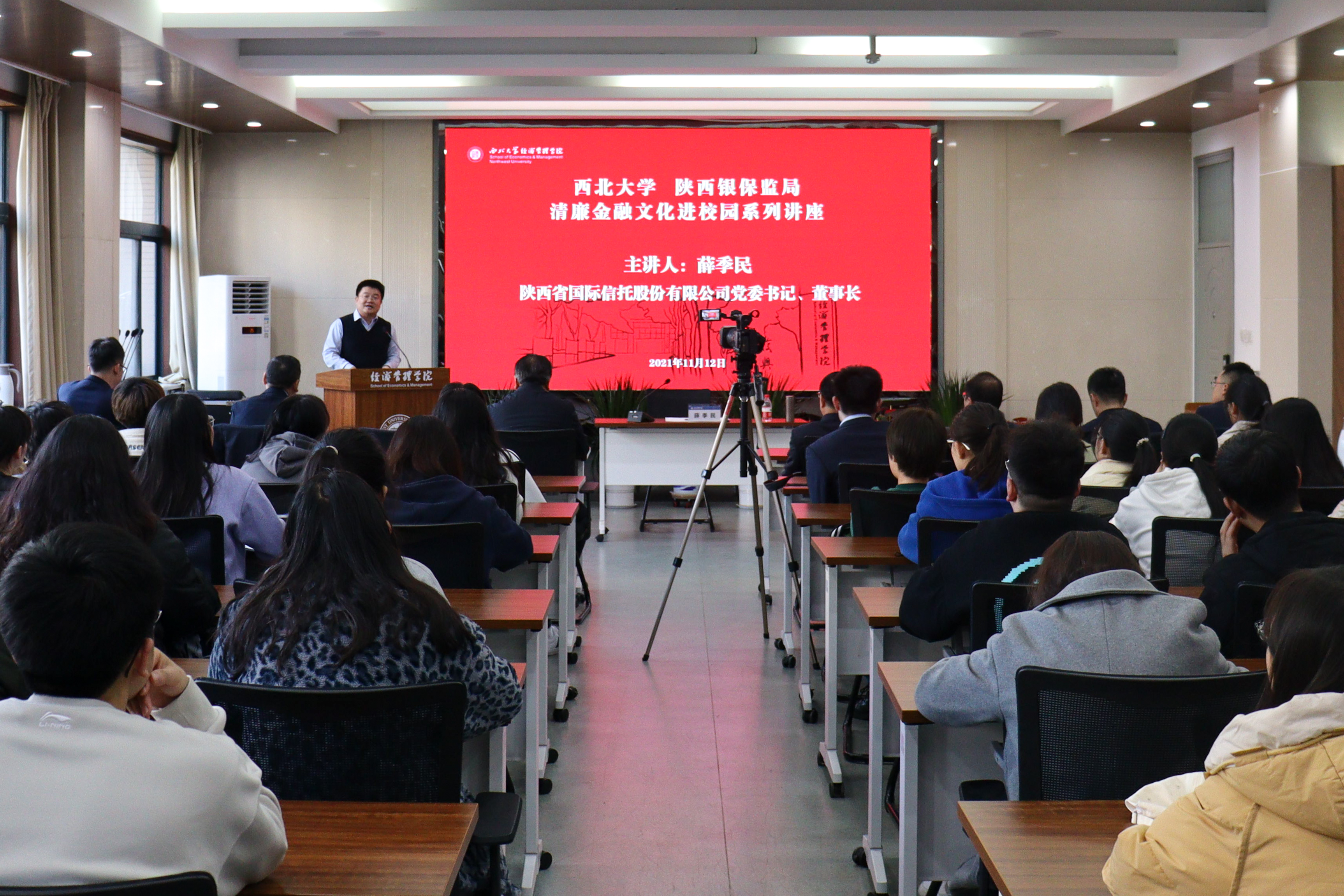 按照乐鱼网页版页面登录与陕西银保监局开展清廉金融文化共建活动的安排和与陕国投签署的校企合作协议,11月12日,陕西省国际信托股份有限公司党委书记、董事长薛季民应邀到乐鱼网页版页面登录,为经济管理学院师生作了题为“涵养清廉金融文化,助推陕国投高质量发展”的清廉金融文化讲座。陕西银保监局、陕西省国际信托股份有限公司、陕国投相关负责人,乐鱼网页版页面登录党委副书记、纪委书记,陕西省监察委员会驻乐鱼网页版页面登录监察专员李邦邦,和乐鱼网页版页面登录经济管理学院师生代表出席了本次活动。讲座由校党委常委、副校长吴振磊主持。