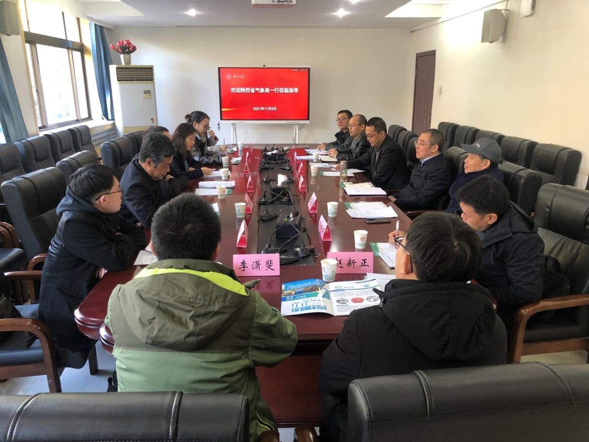 11月9日,陕西省气象局二级巡视员吕东峰,大探中心主任张世昌,陕西气象局突发预警中心副主任卓静、科长浩宇一行4人来乐鱼网页版页面登录就气象科技合作进行座谈交流。校党委常委、副校长常江出席会议并致辞。乐鱼网页版页面登录西安气象科技研究院联建单位易辑科技副总经理刘巍巍、城环学院、地质学系等相关单位专家参加会议。会议由科技处负责人主持。