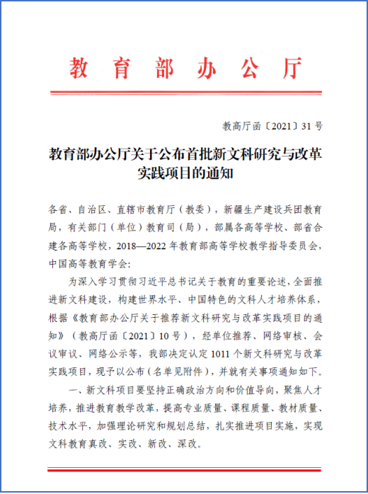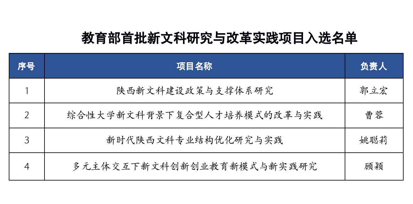 近日,教育部公布首批新文科研究与改革实践项目,乐鱼网页版页面登录《陕西新文科建设政策与支撑体系研究》等4个项目入选,获批数量居陕西省属高校首位。