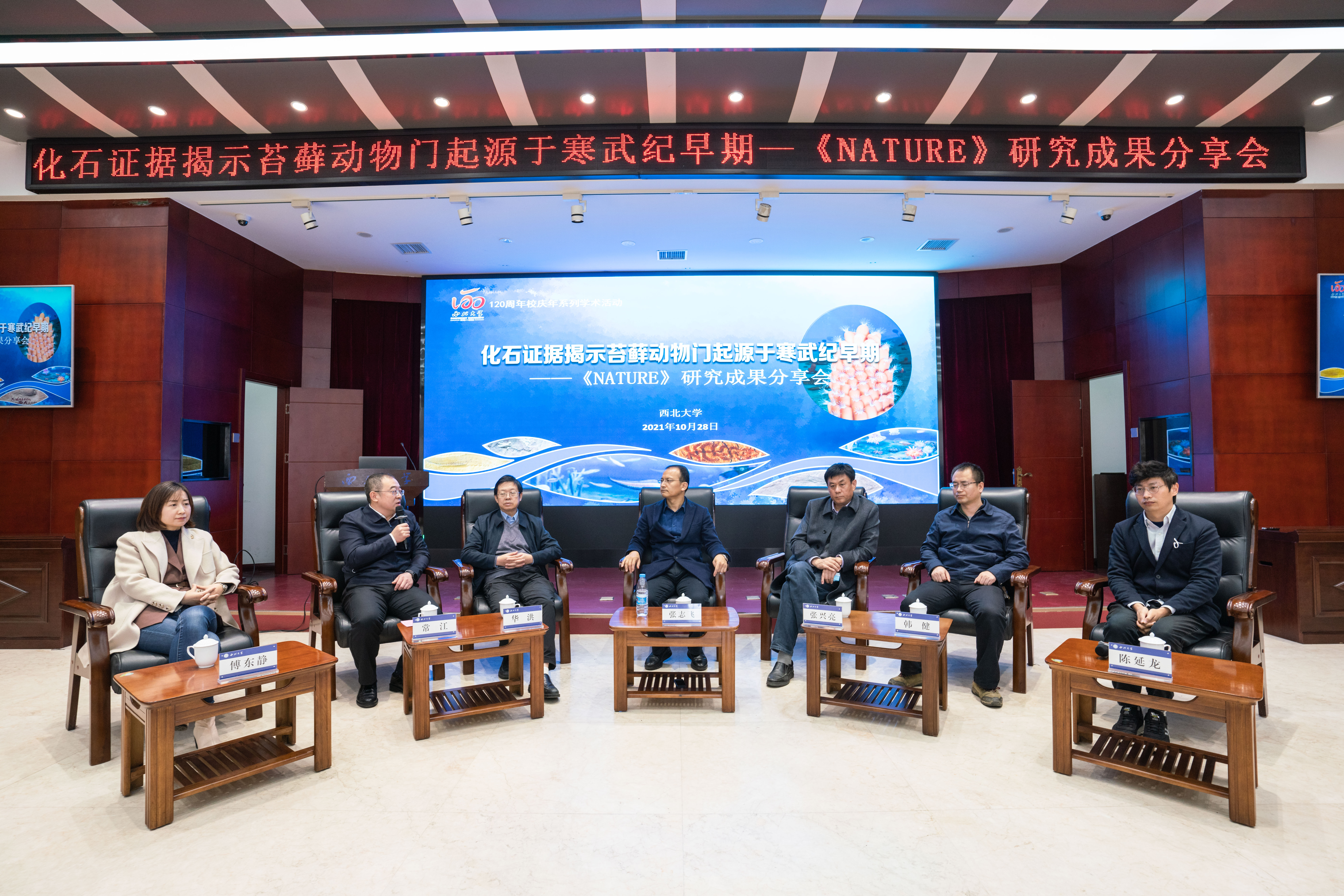 10月28日上午,“化石证据揭示苔藓动物门起源于寒武纪早期”——NATURE研究成果分享会在乐鱼网页版页面登录太白校区召开。此次分享会也是乐鱼网页版页面登录120周年校庆系列学术活动的首场重大科研成果分享交流和科普活动。校党委常委、副校长常江出席会议并主持嘉宾访谈。宣传部、科技处、研究生院、规划与学科处负责人,地质学系师生代表参加会议。