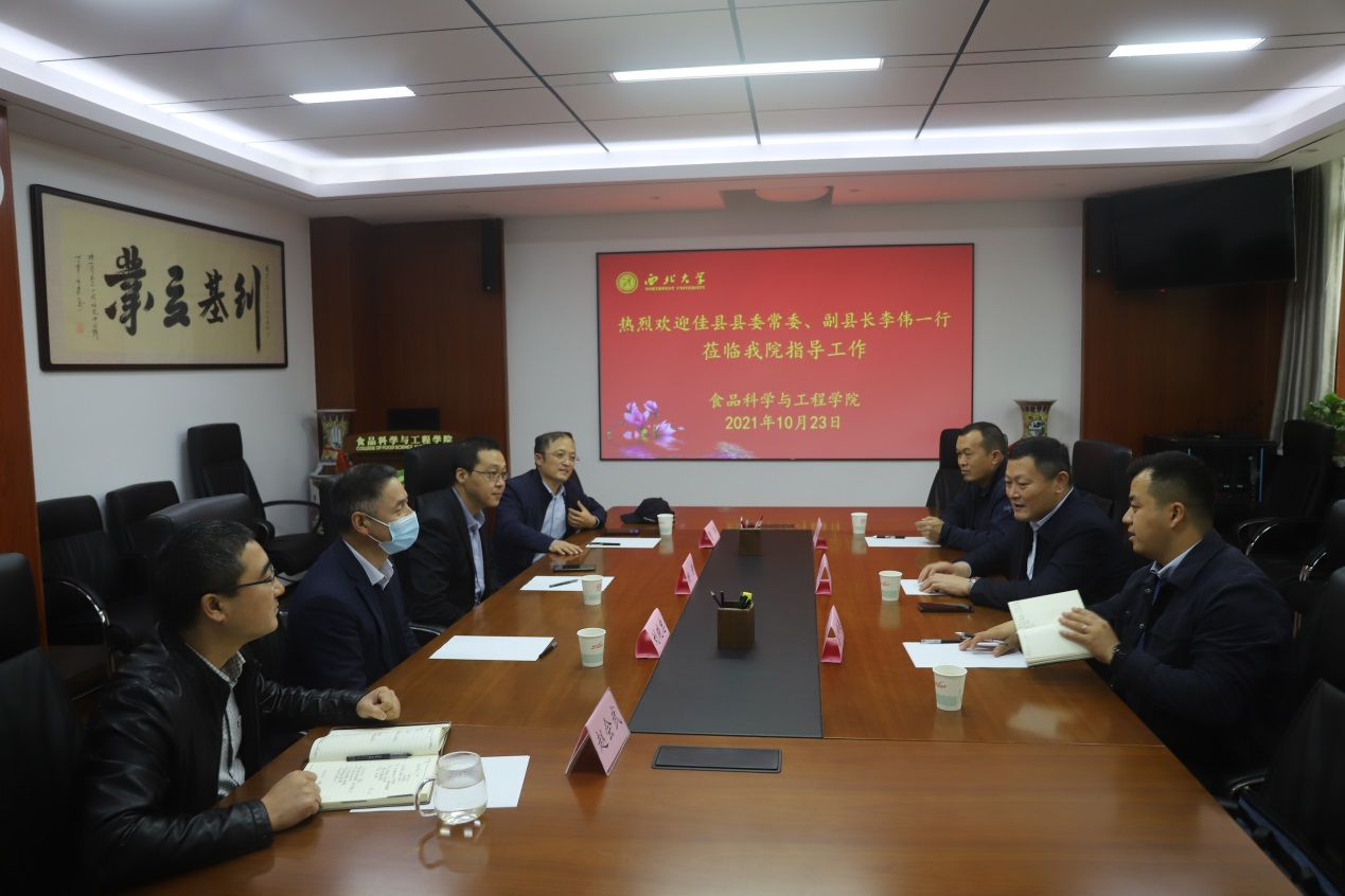 10月23日下午,科技部监管中心挂职佳县县委常委、副县长李伟一行就科技帮扶相关事宜来校调研。佳县人民政府办公室高帅伟、佳县高盛养殖专业合作社理事长王高平,乐鱼网页版页面登录科技处、食品学院负责人和教师代表参加会议。乐鱼网页版页面登录党委常委、副校长常江会见了李伟一行。