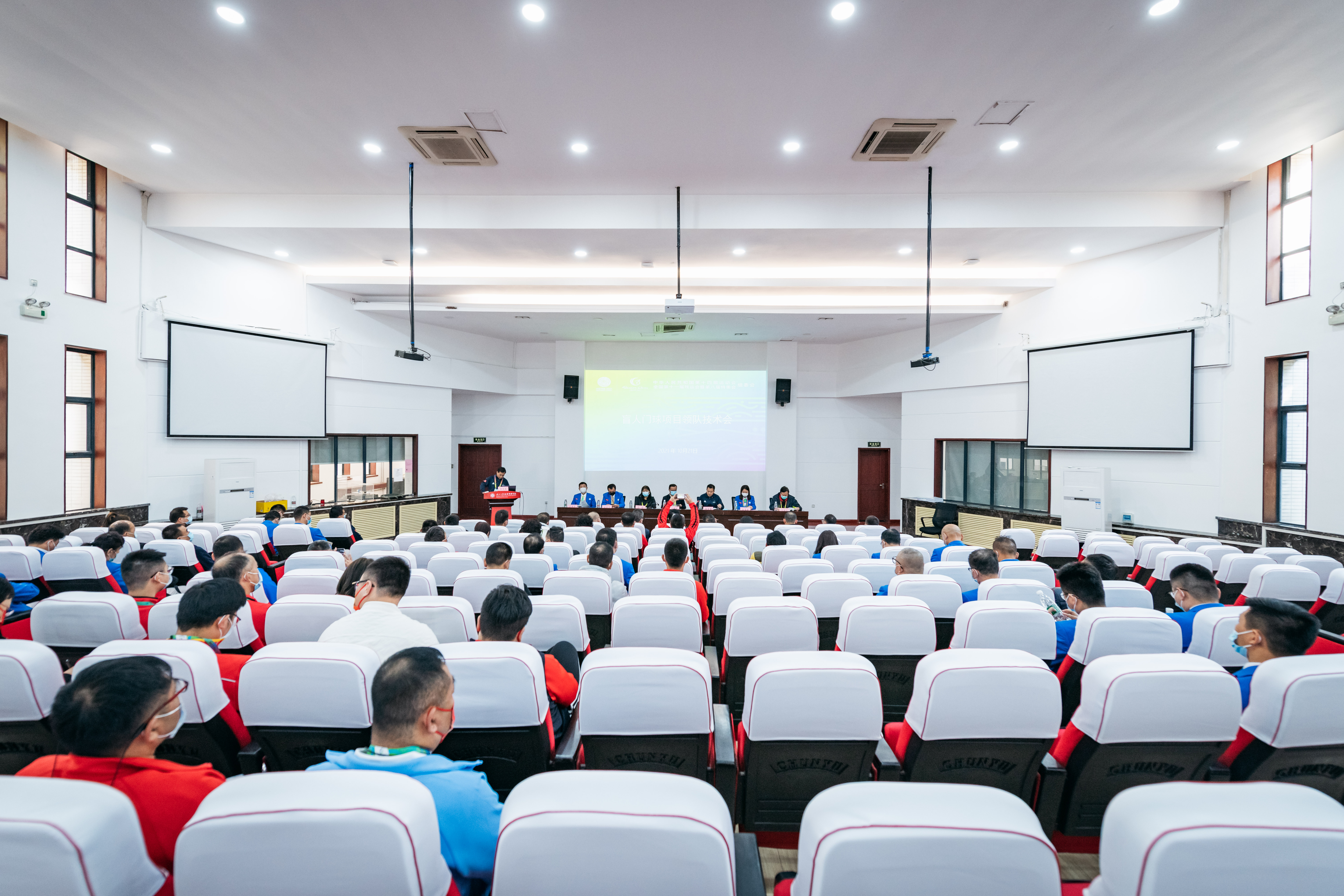 10月21日,残特奥会盲人门球项目领队技术会在学校长安校区召开。盲人门球项目竞委会执行主任、校党委常委、副校长奚家米出席会议,国家体育总局反兴奋剂中心检查官、盲人门球兴奋剂检查站站长于俊,中残联体管中心、盲人门球副技术代表赵享楠,盲人门球技术代表郝国华,仲裁王效义,裁判长毛伟民,长安区高校协调办主任梅春满,盲人门球技术官员,各代表队领队、教练参加会议。