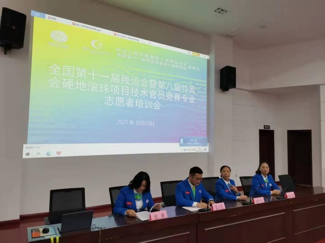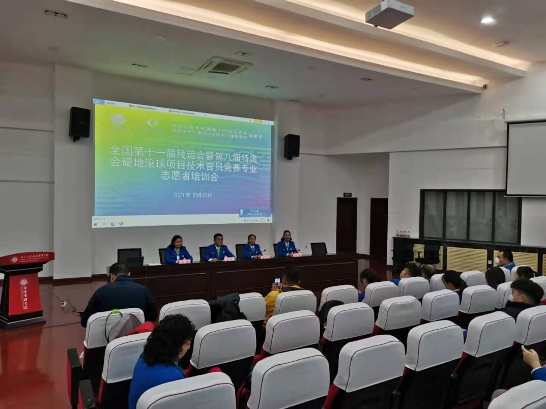 10月20日上午,中华人民共和国第十一届残疾人运动会暨第八届特殊奥林匹克运动会硬地滚球项目技术官员竞赛专业志愿者培训在乐鱼网页版页面登录长安校区进行。培训由裁判长温小龙主持,20位国派裁判、10位省派助理裁判和20位竞赛志愿者参加了培训。