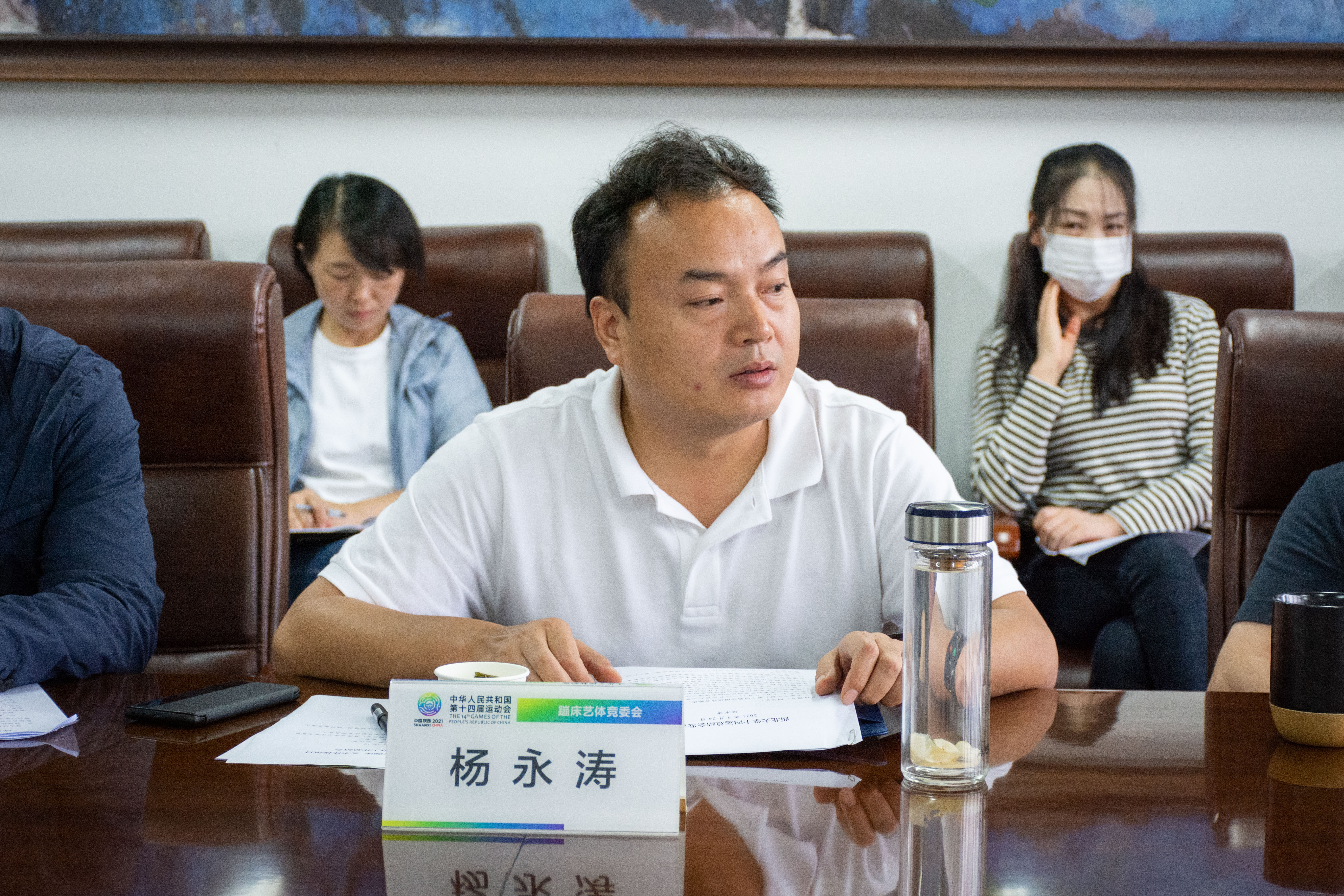杨永涛在讲话中指出,通过校地合办十四运会赛事,切实感受到了乐鱼网页版页面登录这所百年名校严谨务实、追求卓越的内涵品质。他对蹦床、艺术体操赛事承办工作给予了充分肯定,并就做好残特奥会筹办工作提出具体要求:一要树立“一盘棋”思维,长安区各职能部门要主动和乐鱼网页版页面登录无缝衔接,服从竞委会调配管理;二要落实好属地保障职责,交通保障、疫情防控、安全保卫等工作要精心谋划,赛前要组织一次全流程演练,确保万无一失。