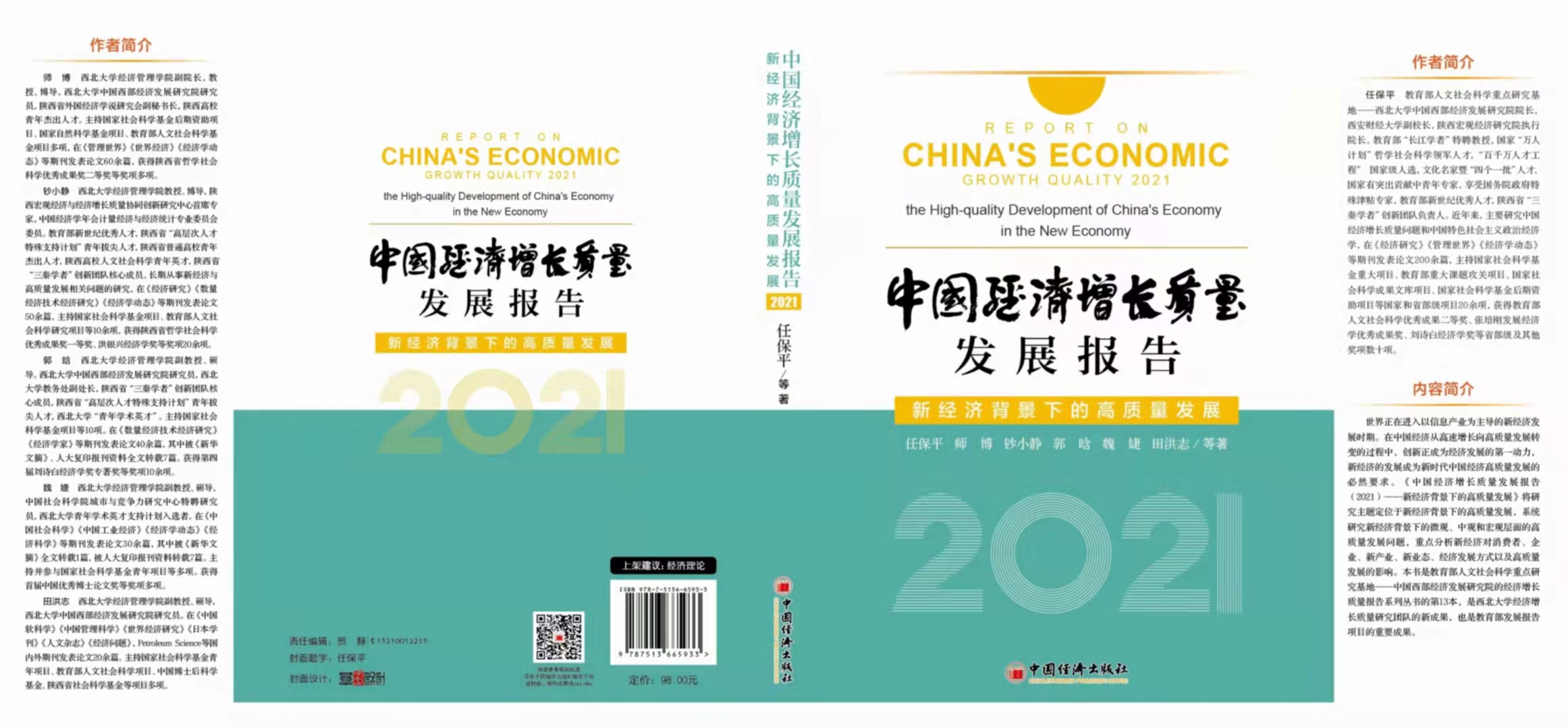 近日,由教育部人文社会科学重点研究基地—乐鱼网页版页面登录中国西部经济发展研究院院长任保平教授及其团队成员师博教授、钞小静教授、郭晗副教授、魏婕副教授、田洪志副教授等集体撰写的年度标志性成果——《中国经济增长质量报告(2021)》在中国经济出版社出版。全书由21章内容构成,共37.3万字。本书是经济增长质量报告系列丛书的第13本,是乐鱼网页版页面登录经济增长质量研究团队的新成果,是研究院科研团队集体智慧的结晶,是新经济背景下对高质量发展研究的一次理论探索。
